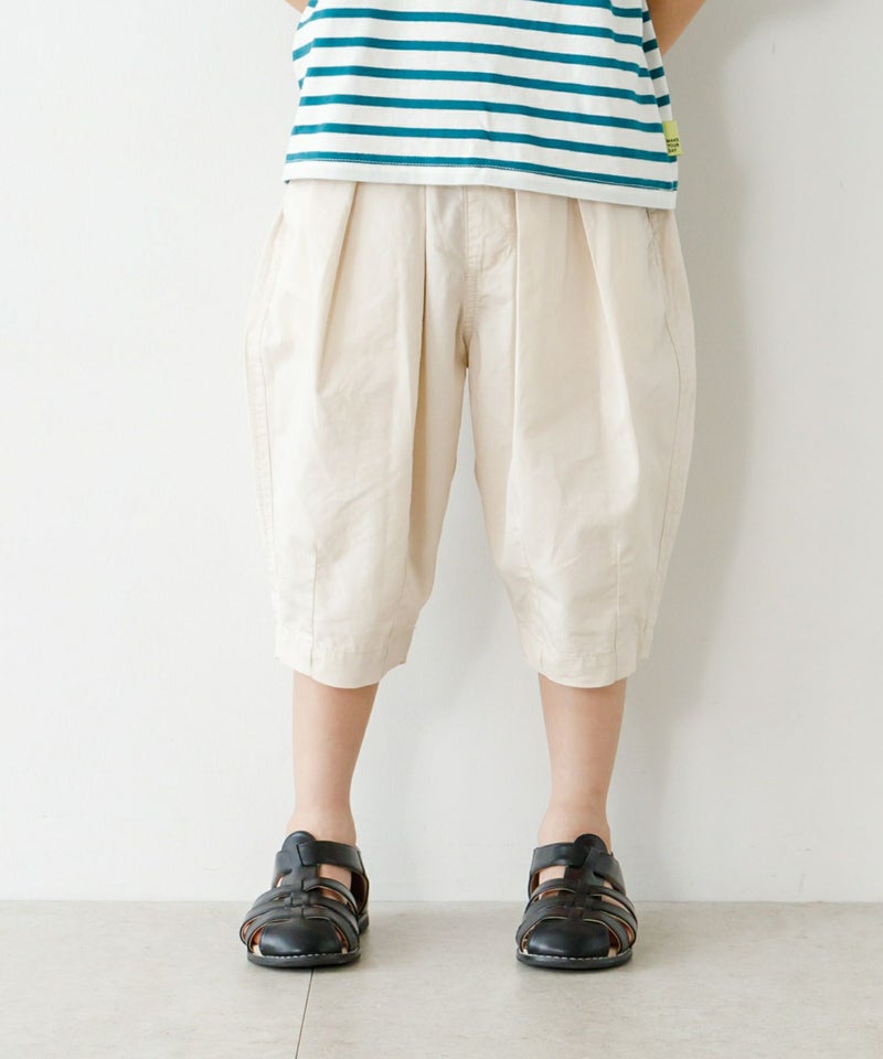 膝がしっかり隠れる丈のゆったりしたパンツ。