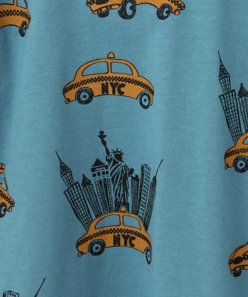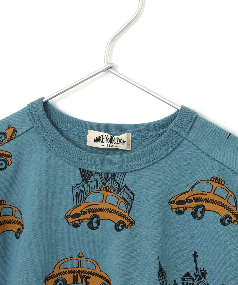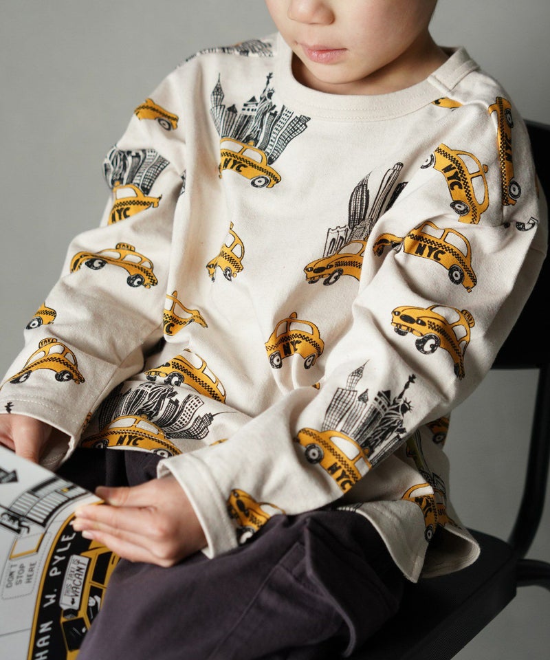 ニューヨーク名物のイエローキャブをメイクユアデイらしい手書きタッチでコミカルに描いた長袖Tシャツ。