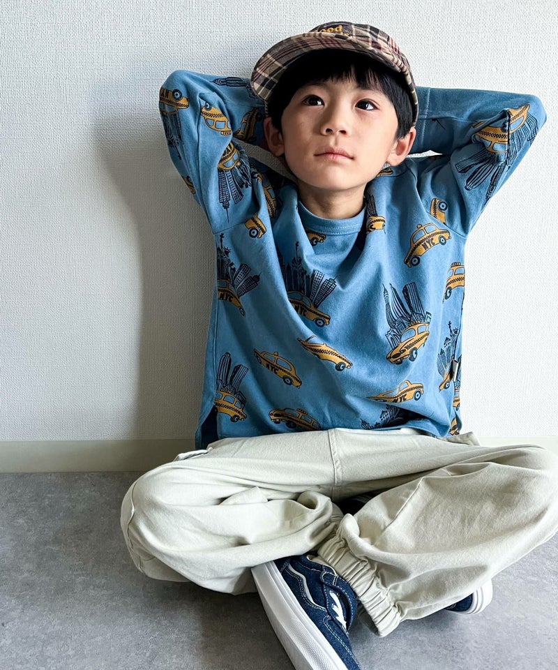【セール】イエロータクシー総柄長袖Tシャツ■80~140cm