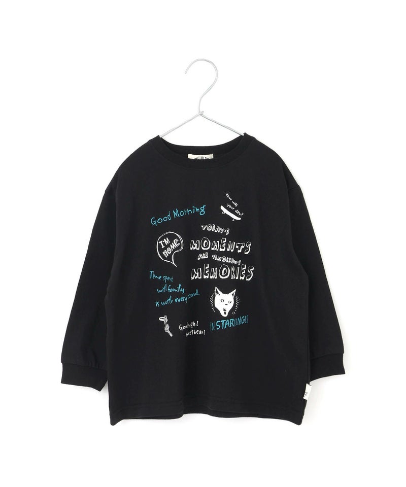 シルエットはゆったりしていて、袖口のリブで腕まくりしても落ちてきにくいので、ごはんの時やお絵かきの時などちょっとラクチンです。