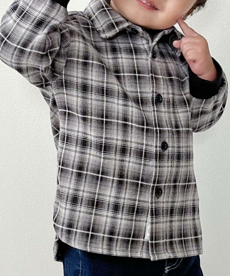 【セール】無地とチェックのベーシックシャツ■80~140cm