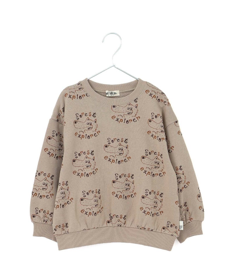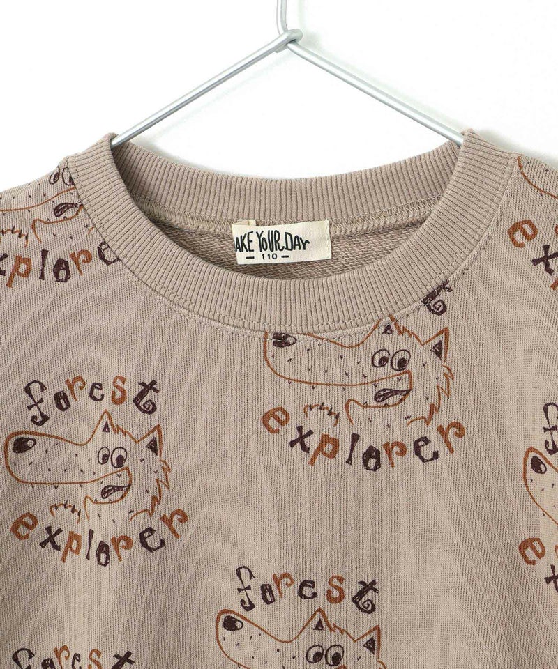 【セール】探検家オオカミの総柄裏毛トレーナー■80~140cm