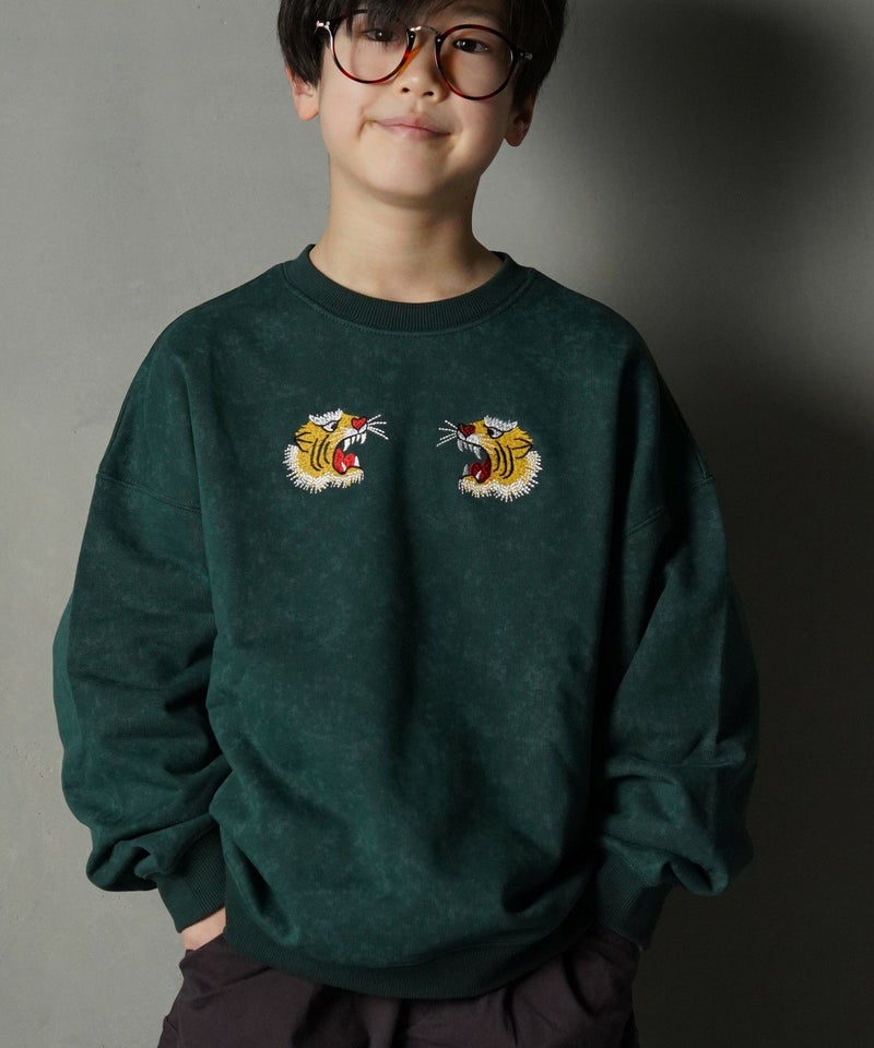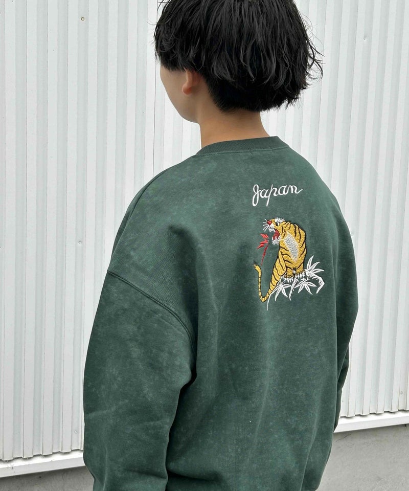 【セール】スカジャン風トラ刺繍裏毛トレーナー■150.160cm