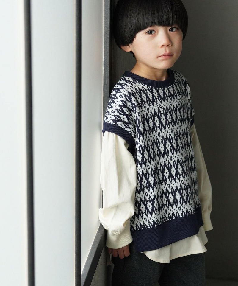 ニット風のジャガード生地とシャツがレイヤードされていて、1枚でコーディネートが決まる便利なアイテム。