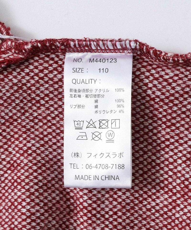 前後身頃部分)アクリル100% 左右袖・裾切替部分)綿100% リブ部分)綿96% ポリウレタン4%
