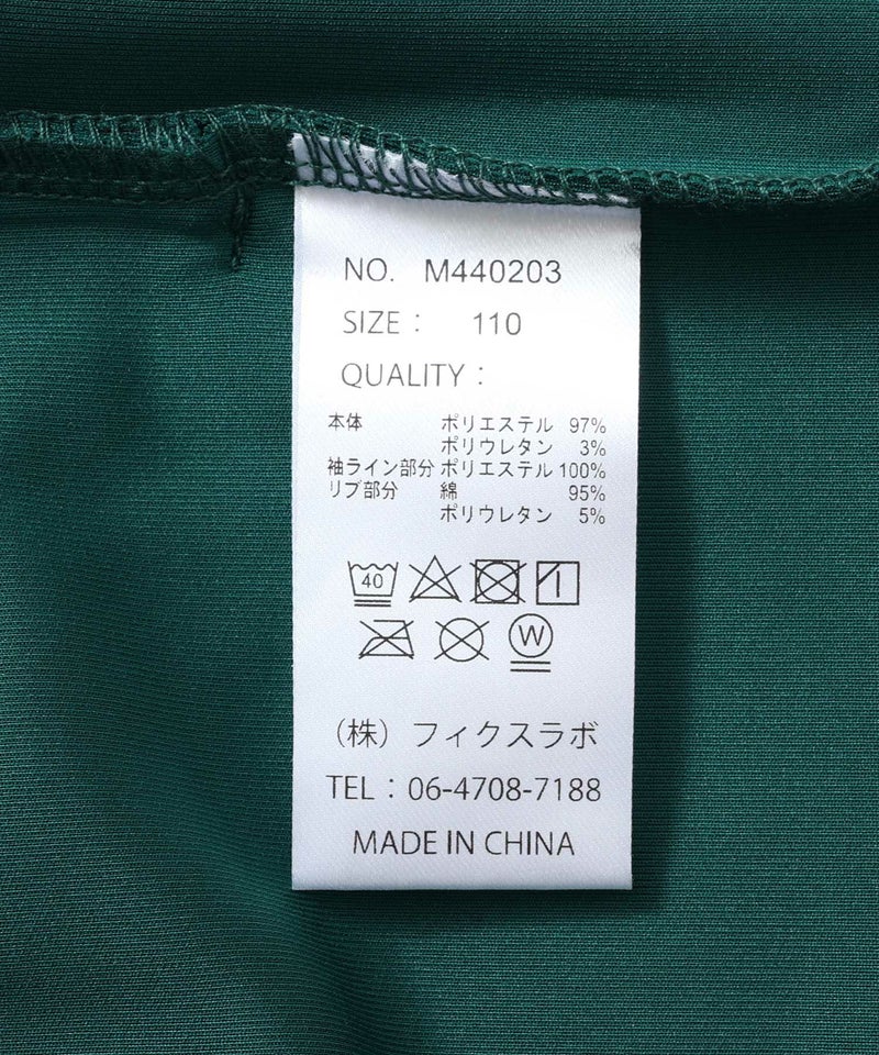 本体)ポリエステル97% ポリウレタン3% 袖ライン部分)ポリエステル100% リブ部分)綿95% ポリウレタン5%