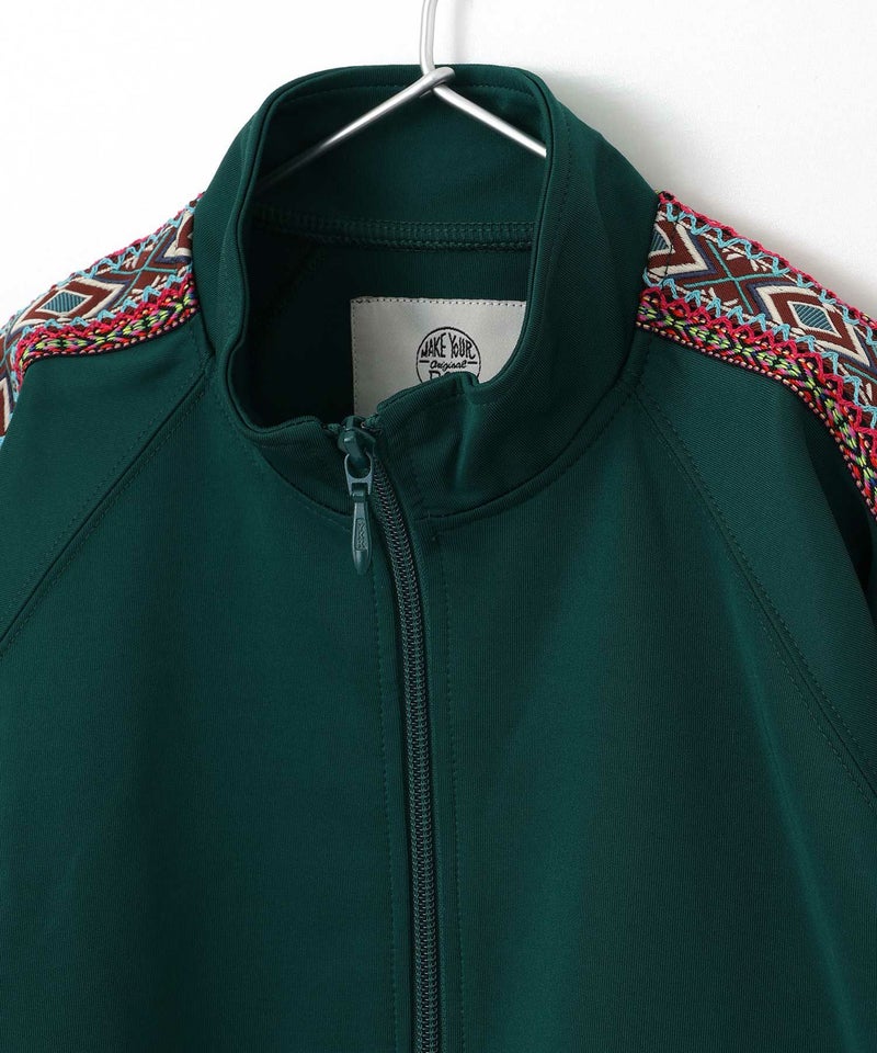 スポーティなトラックジャケットに、エスニックな刺繍を掛け合わせたちょっと珍しいデザイン。