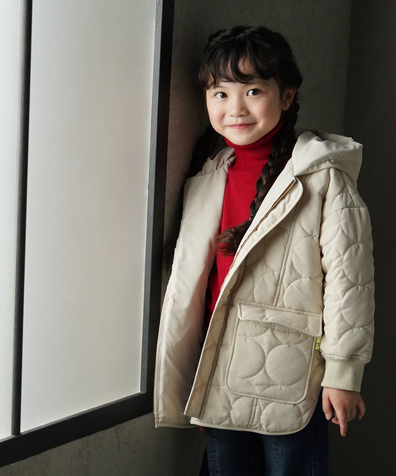 大きなドットがかわいいキルティング素材を活かしながら、シンプルにかっこよくも着られるリバーシブルコート!