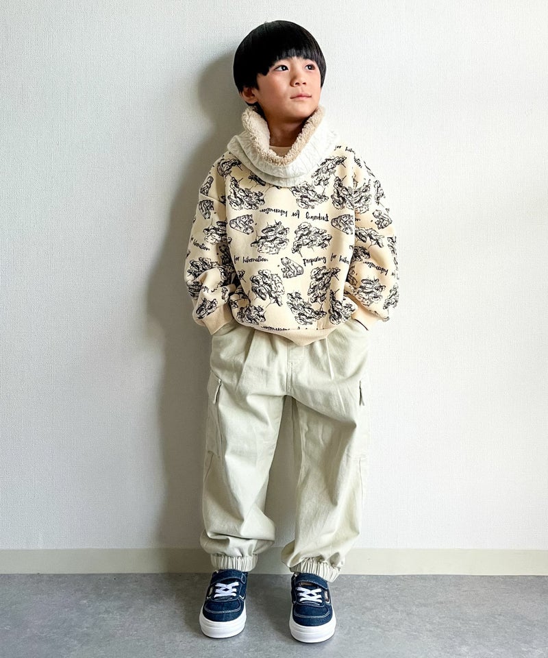 裾口はジョガータイプになっているので、足もとはスッキリ、全体はたぽっとしたシルエットがとてもかわいいです◎