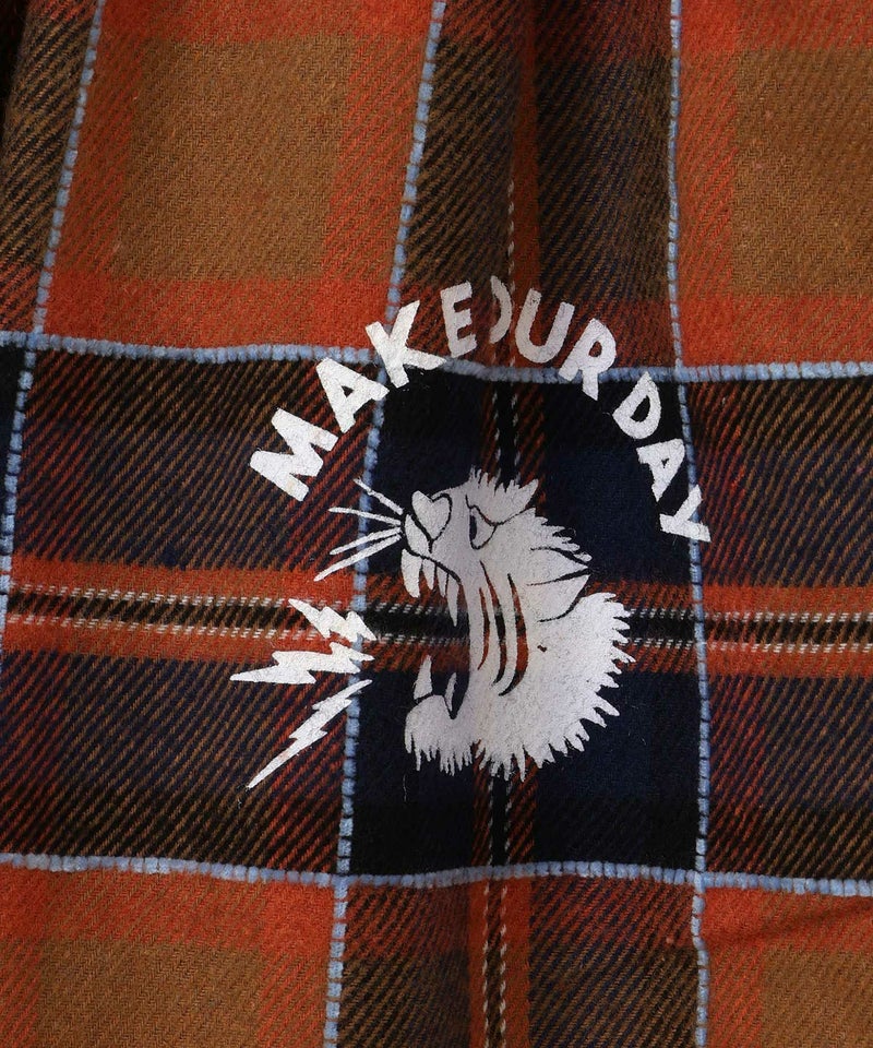 厚みのしっかりある素材のチェック×カレッジプリントで今季トレンドスタイルにもってこいのデザインです!