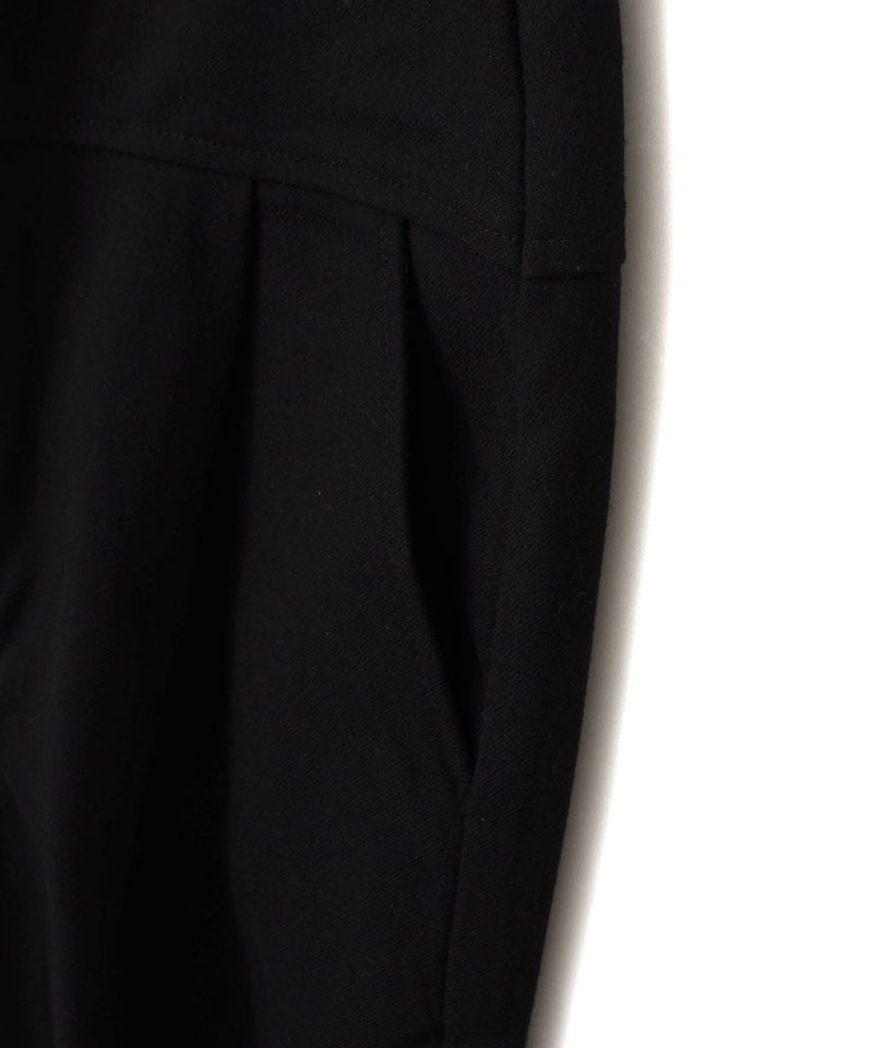 腰回りがゆったりしたシルエットになっているオ-バーオール。