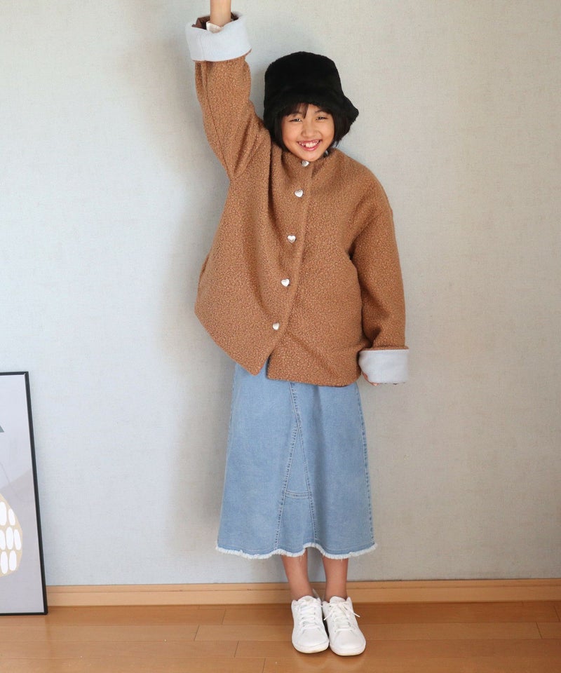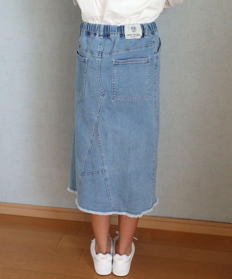 【セール】デニムとコールテンのリメイク風スカート■150.160cm