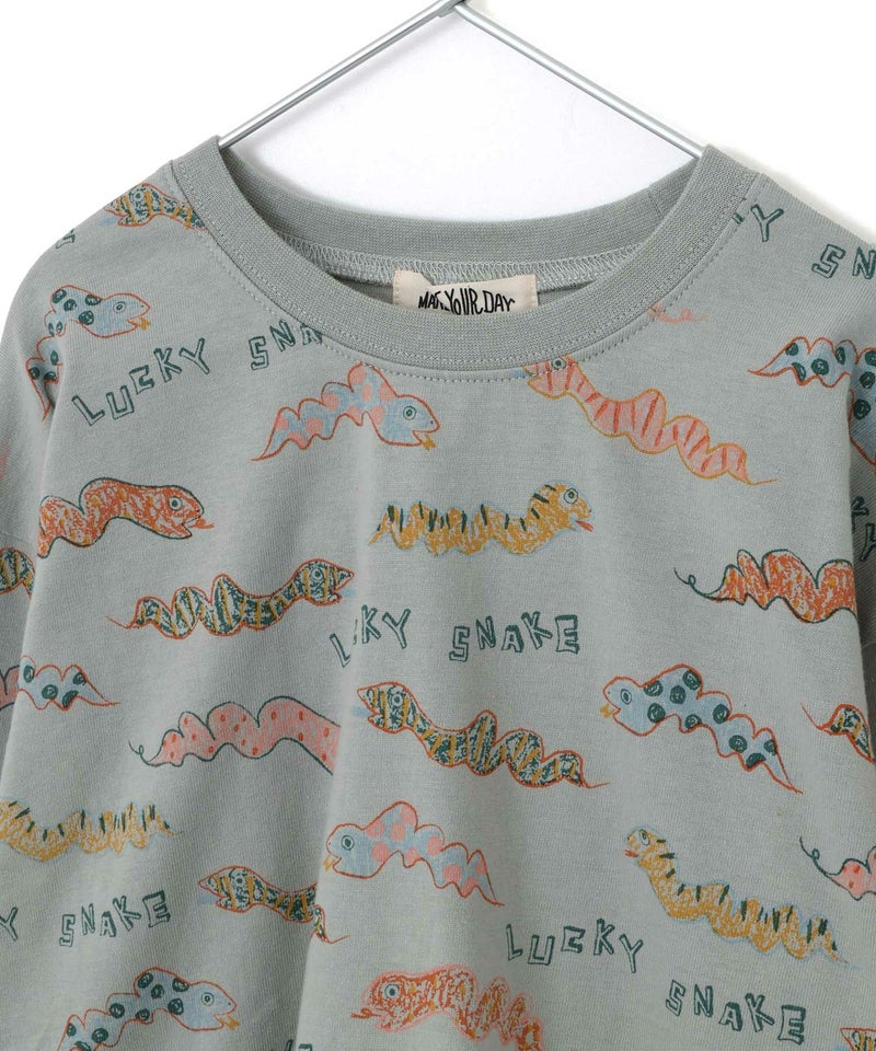 【セール】ヘビヘビ総柄長袖Tシャツ■150.160cm