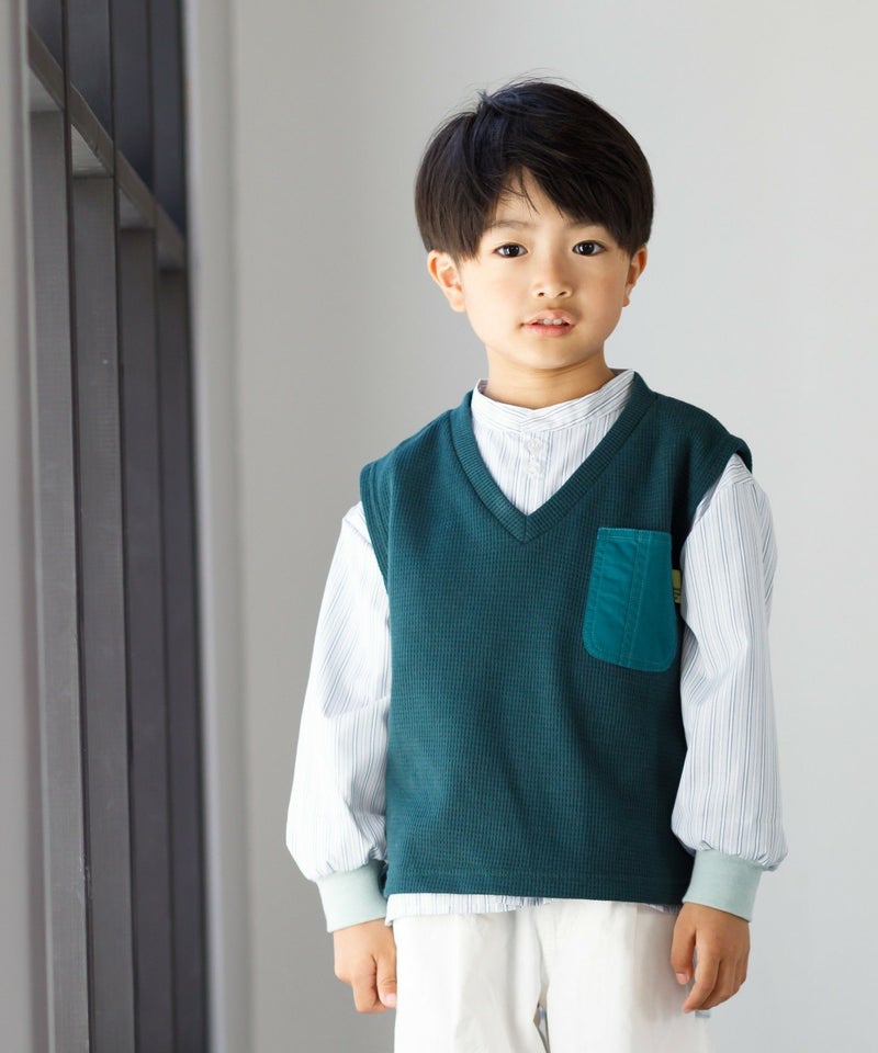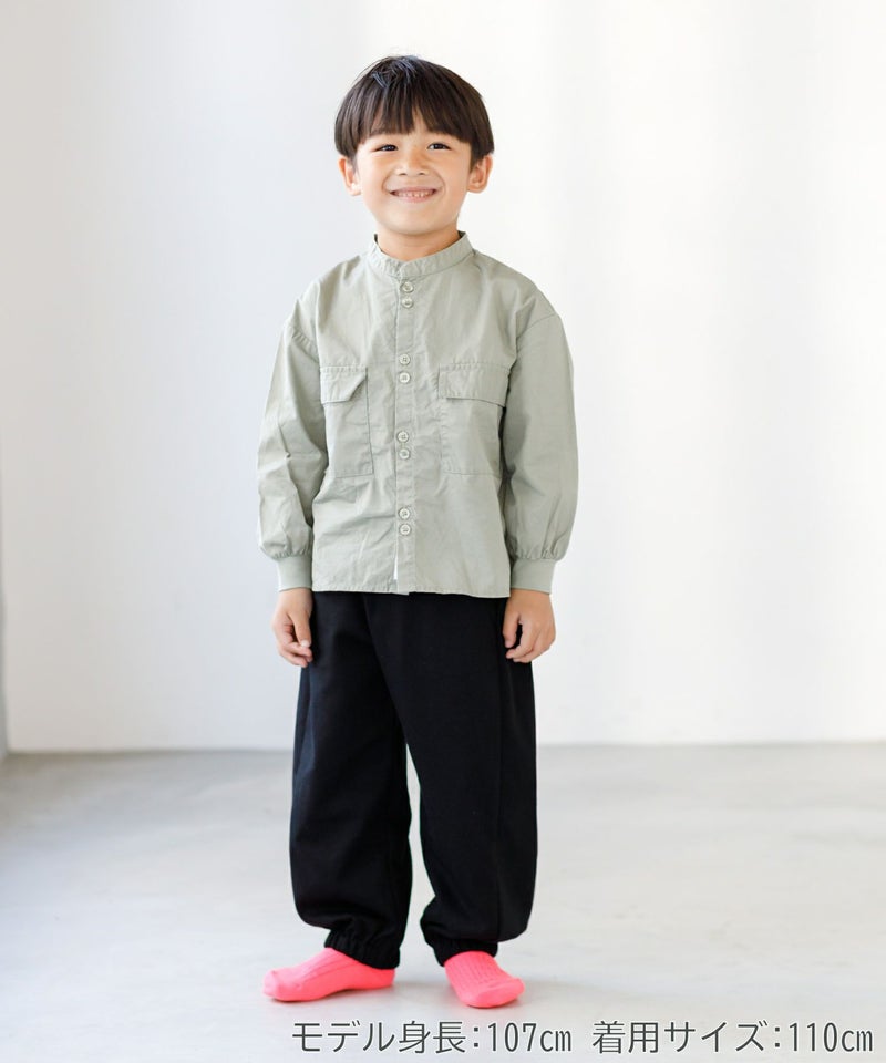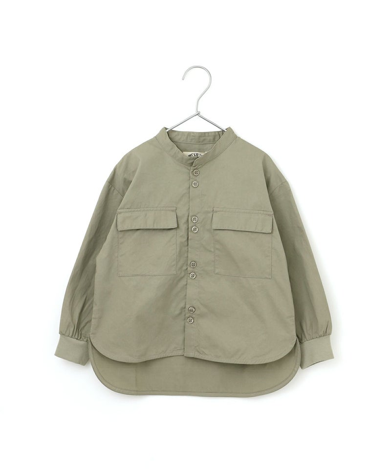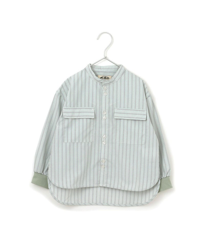 【セール】無地とストライプのバンドカラーシャツ■80~140cm