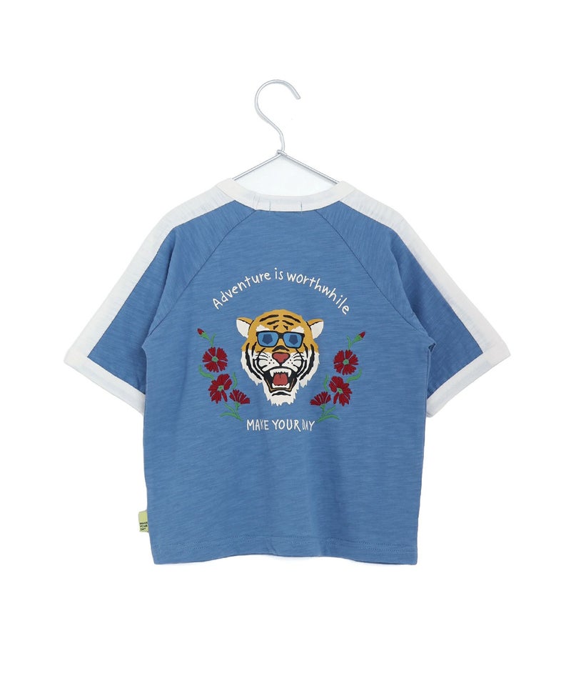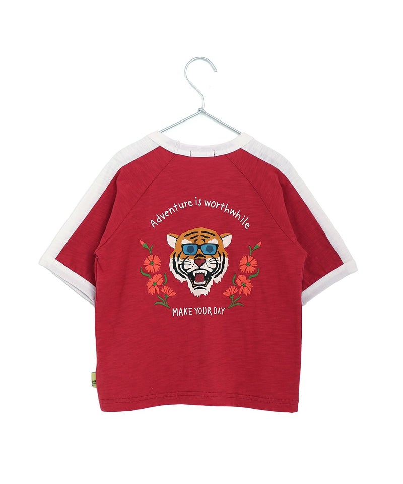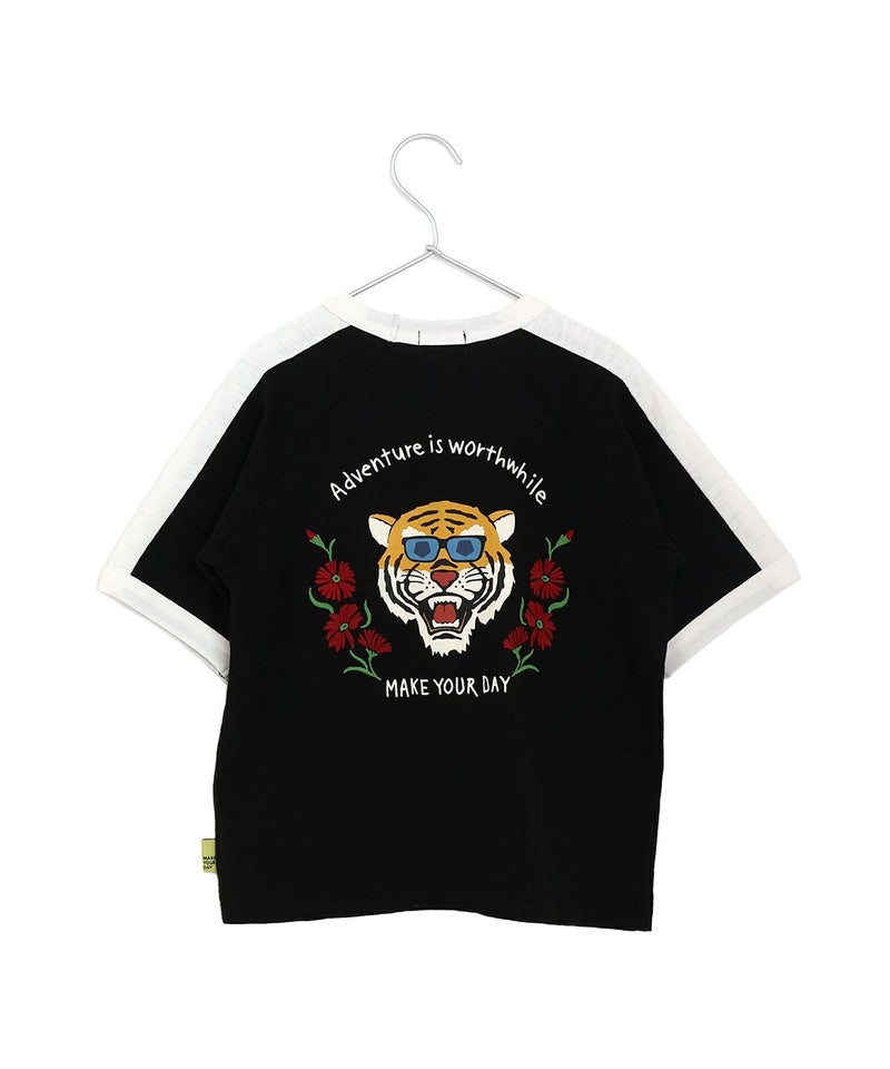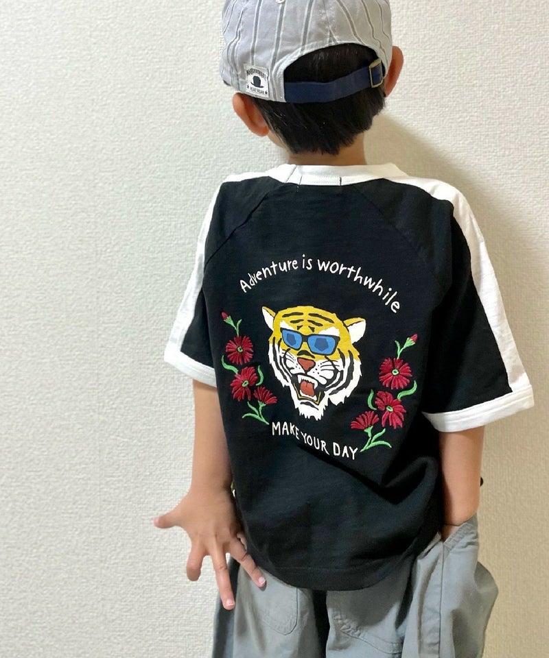 サングラスかけちゃう。お花も背負っちゃう。そんなファンキーなトラさんを背中に描いたスカジャン風Tシャツ。