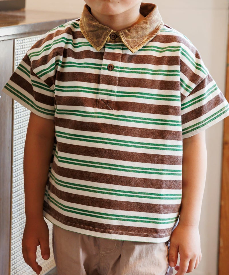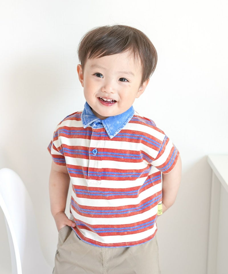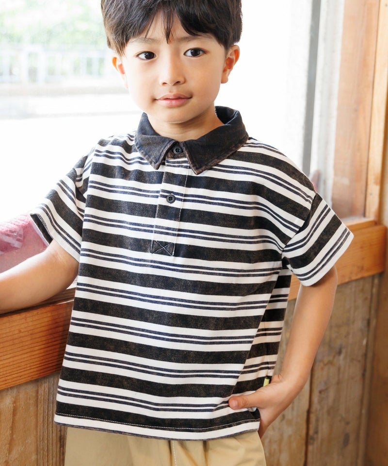 【セール】ケミカルウォッシュ半袖ラガーシャツ■80~140cm