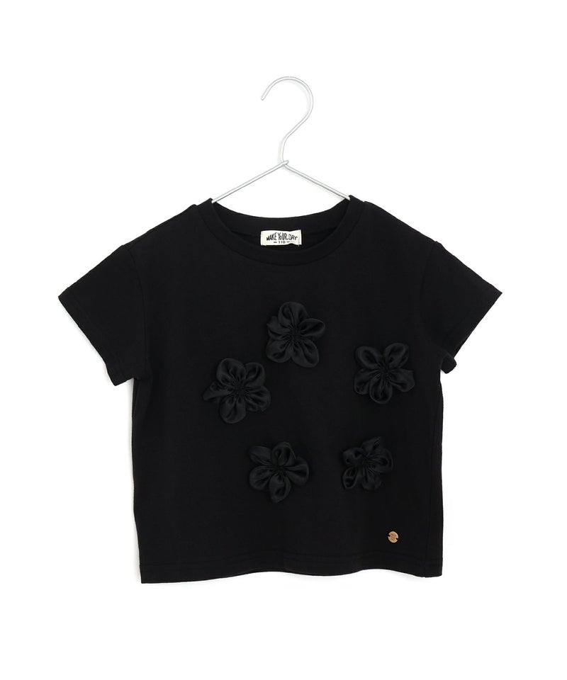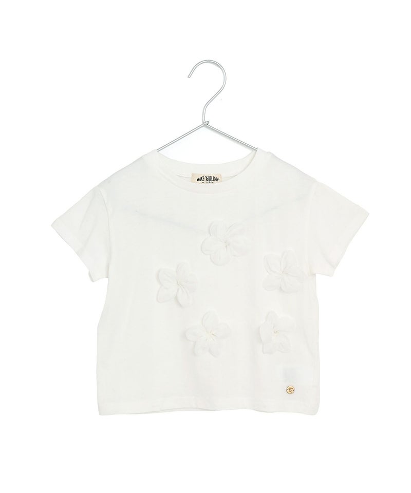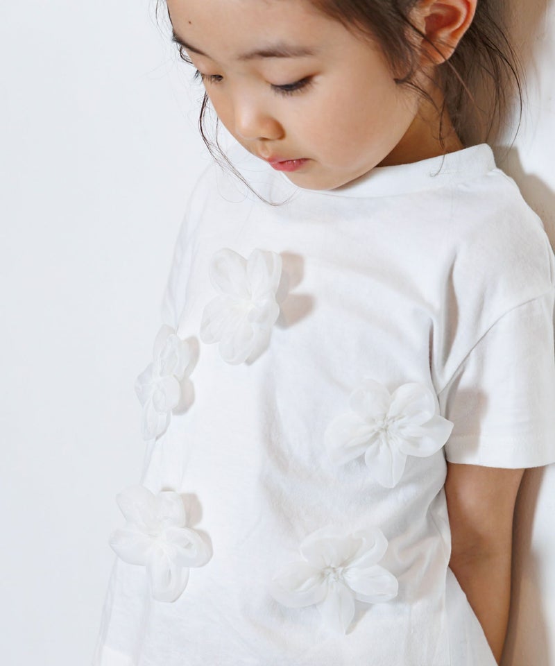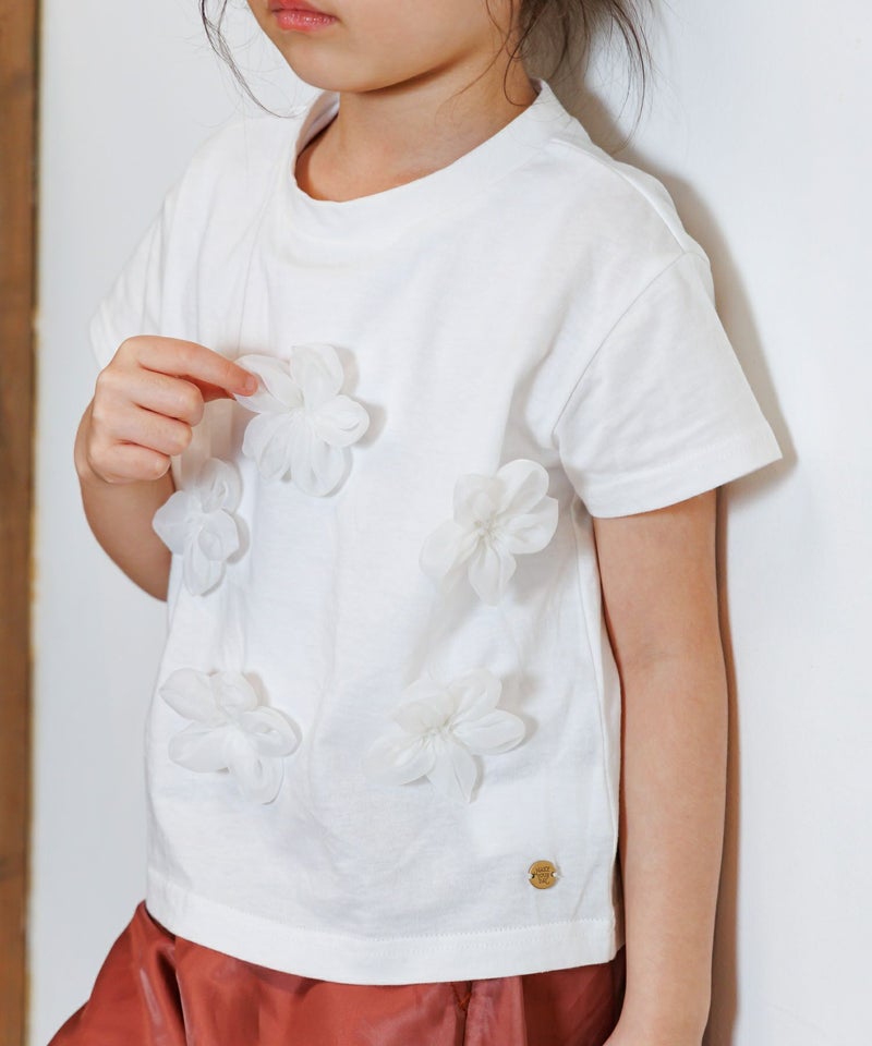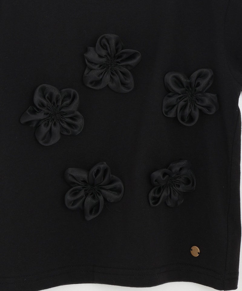 シンプルな無地のTシャツと見せかけて、実はおっきな立体的なお花がぽこぽこどんっとついているインパクトあるTシャツ。