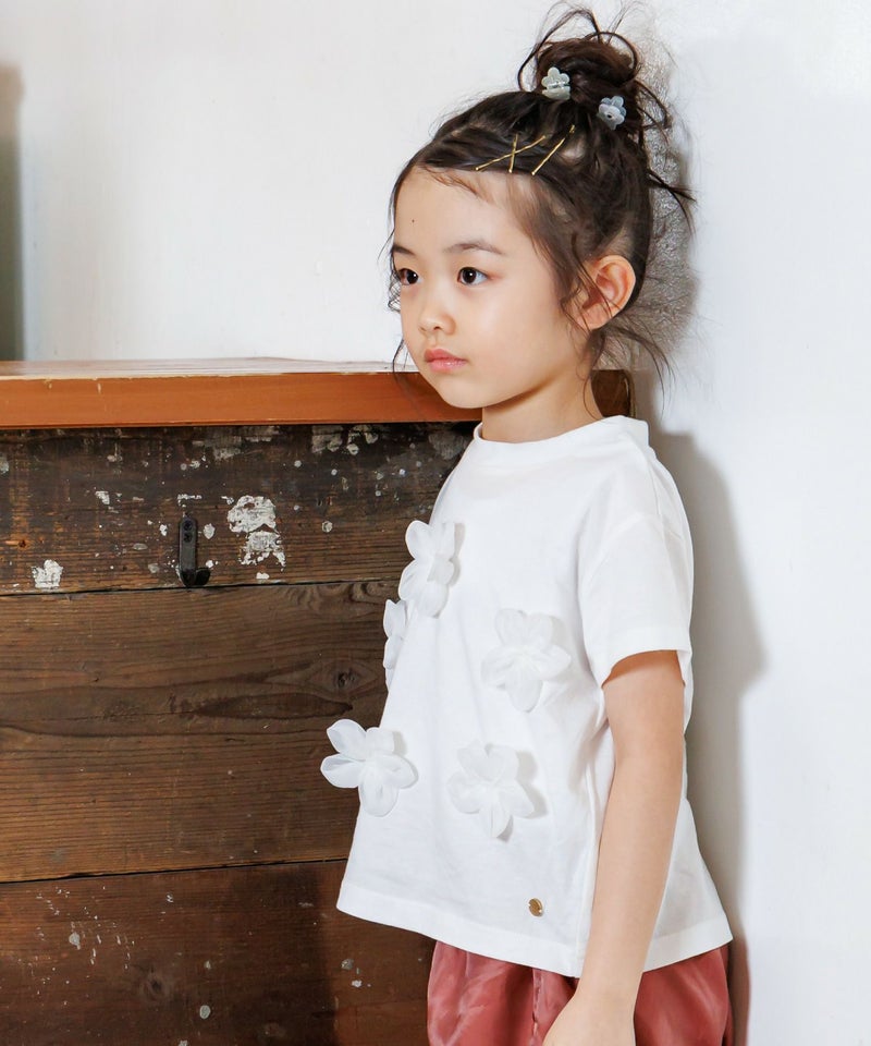 【セール】フラワーモチーフ半袖Tシャツ■80~140cm