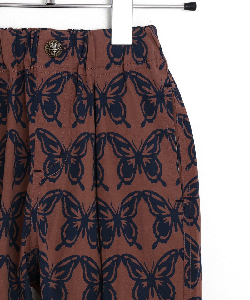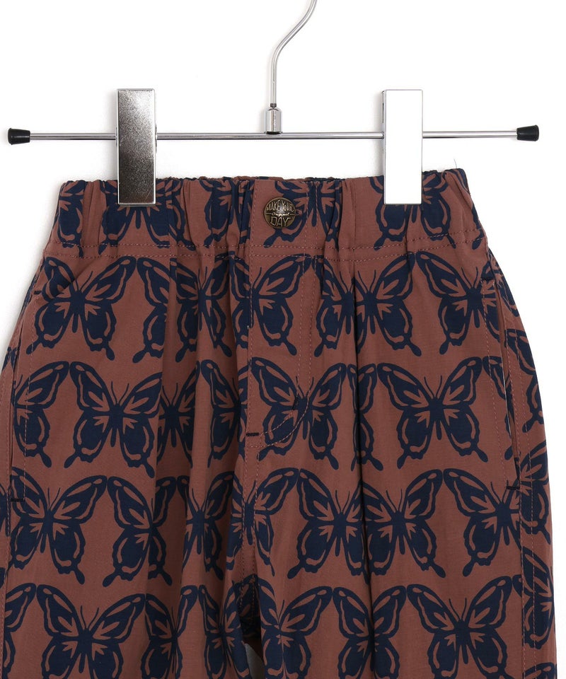 【セール】バタフライ柄ストレッチタックパンツ■150.160cm