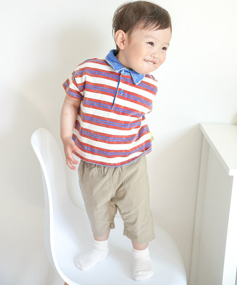 【セール】ストレッチ6分丈タックパンツ■80~140cm