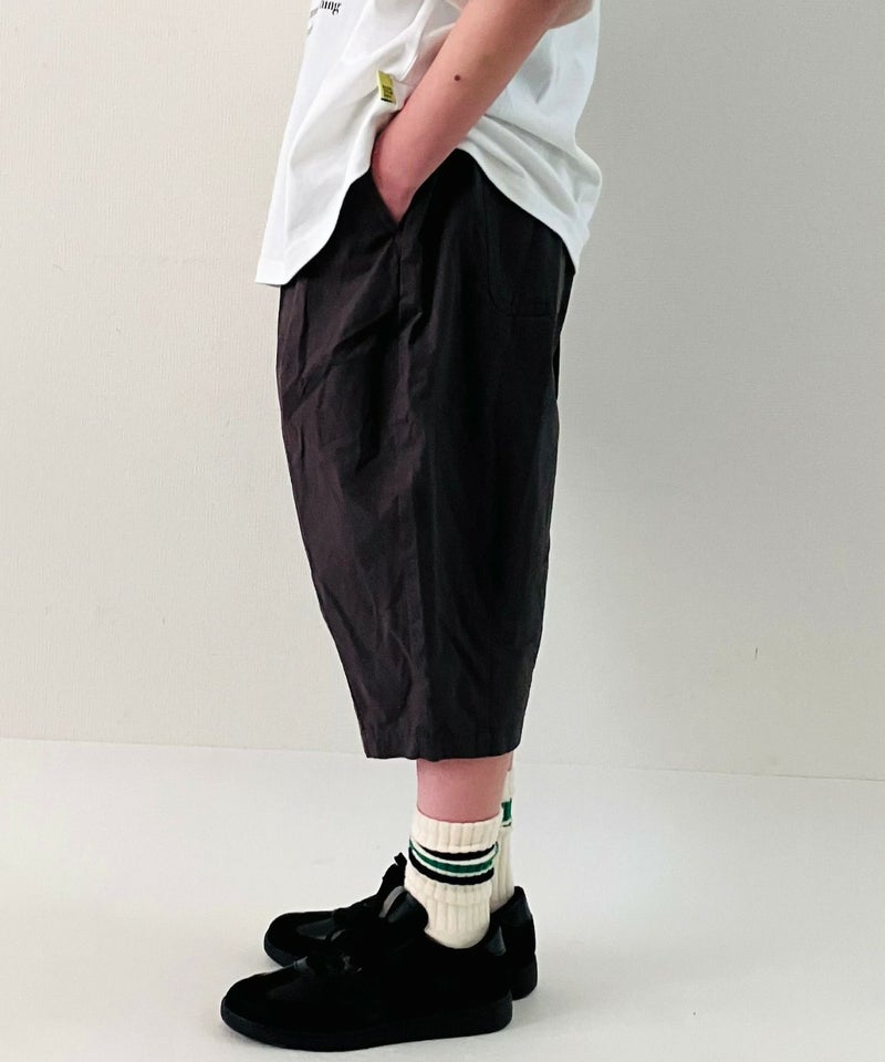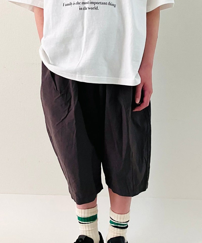 膝がしっかり隠れる6分丈のゆったりしたパンツ。