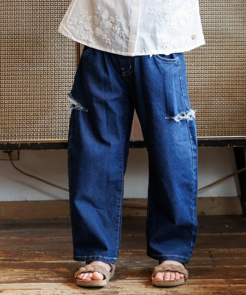 【セール】カットアウトデニムパンツ■80~140cm