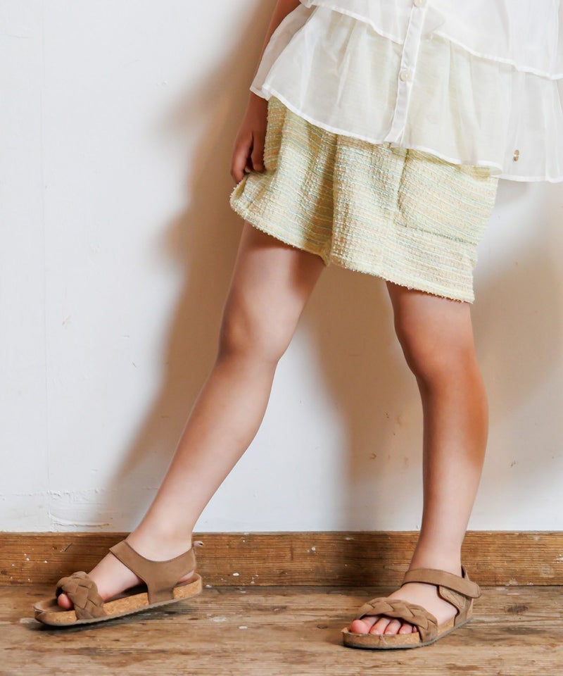 高級感のあるツイード素材と、シャーリング素材を使用したショートパンツ。