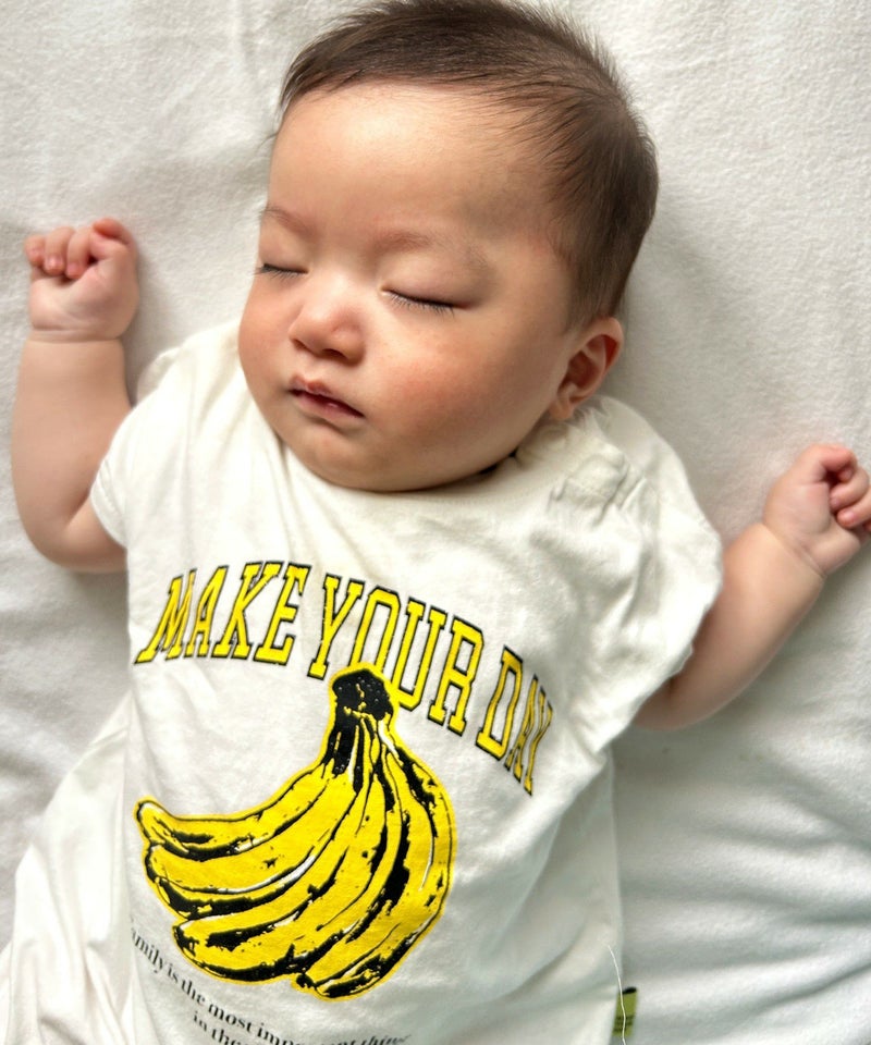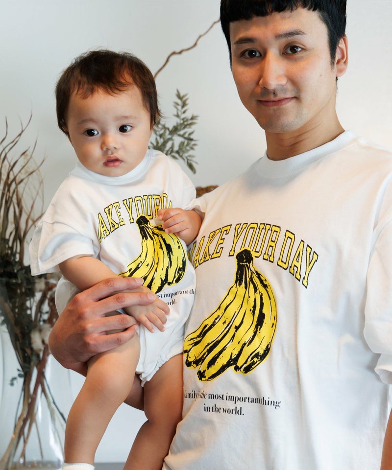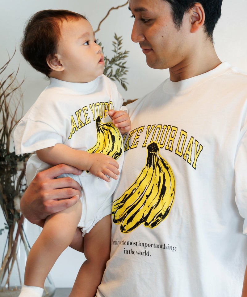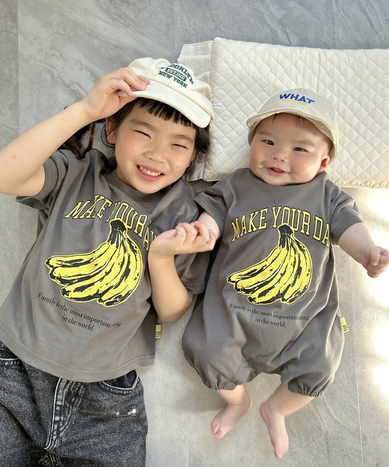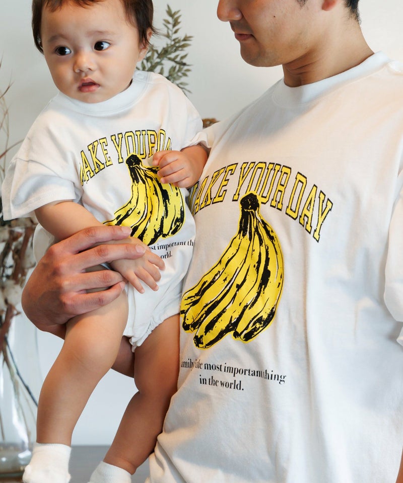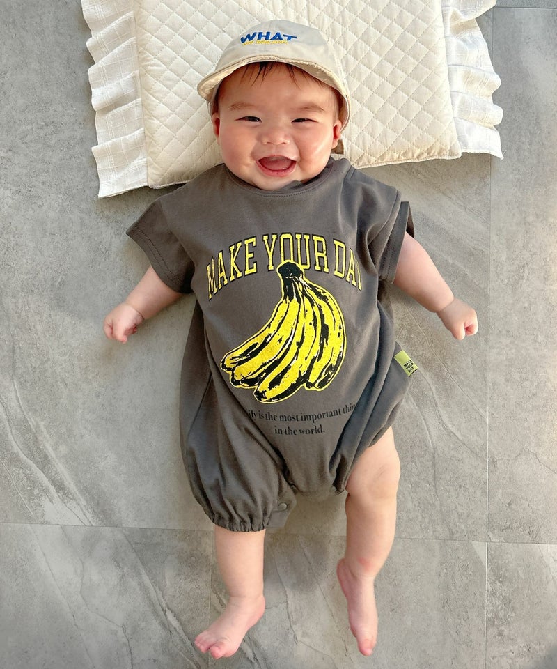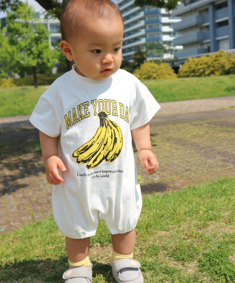 【セール】バナナとロゴ半袖ロンパス