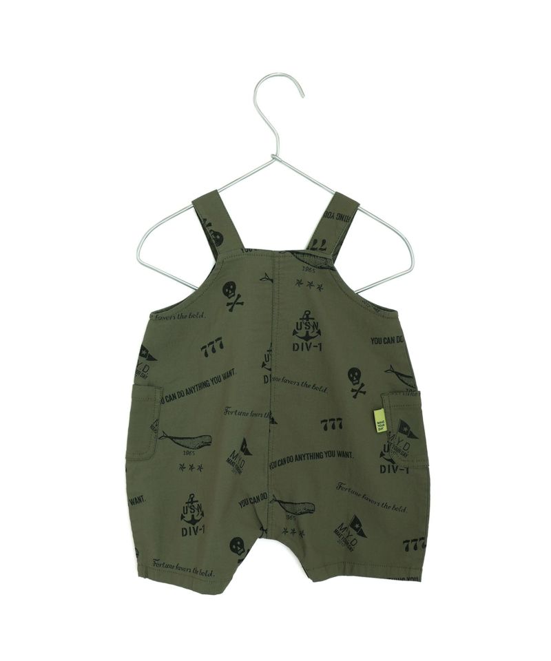 ぽわんとしたシルエットがかわいいショートオールをかっこいいミリタリー柄で。