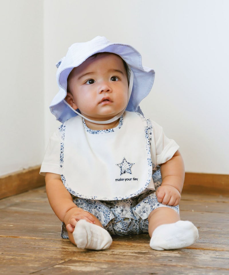 明るいカラーで、おそろいのスタイやベビーパンツ、ベビーハットもあるのでギフトにもおすすめです◎