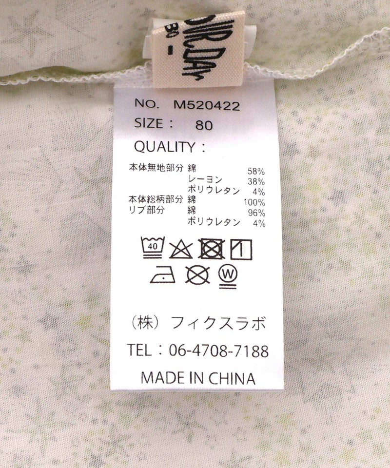 本体無地部分)綿58% レーヨン38% ポリウレタン4% 本体総柄部分)綿100% リブ部分)綿96% ポリウレタン4%