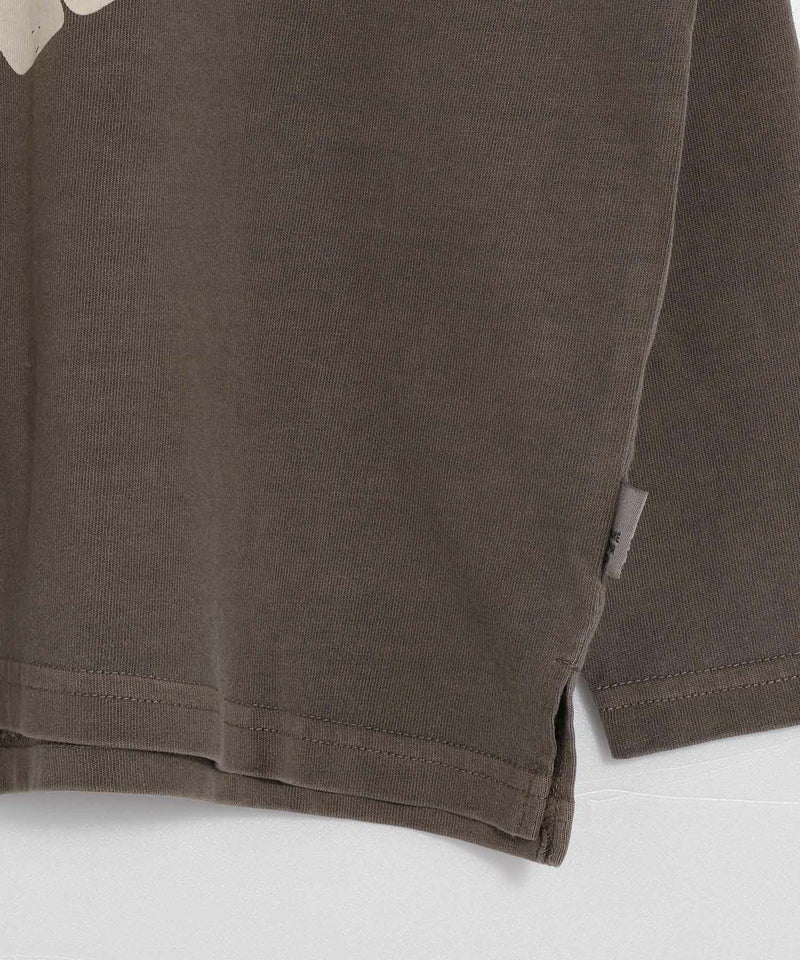 製品染めを施して古着感を醸し出すコットン100%の素材に、ポップなロゴがインパクトあるデザインです。