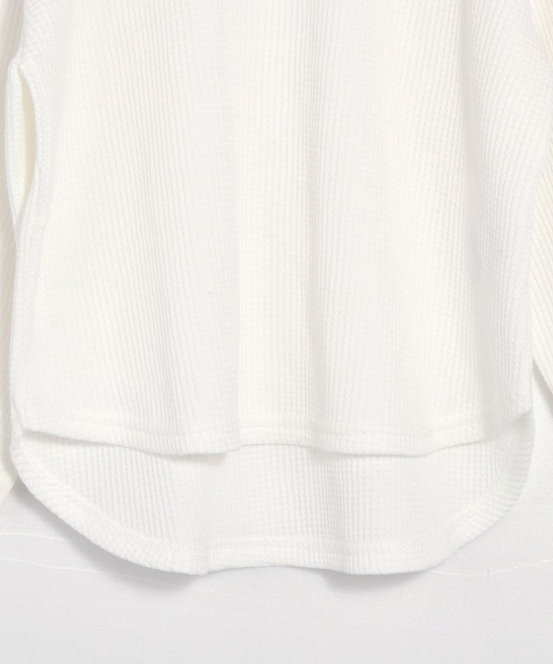 後ろ身頃の裾はラウンドになっていて、レイヤードスタイルの時にはちらっと見える丈感が更に活用の幅を広げてくれます。