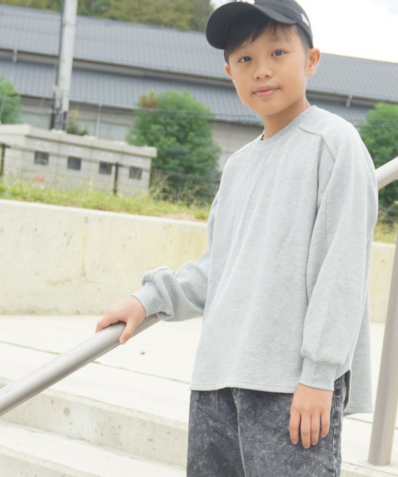 【セール】無地サーマルラウンドヘム長袖Tシャツ■150.160cm