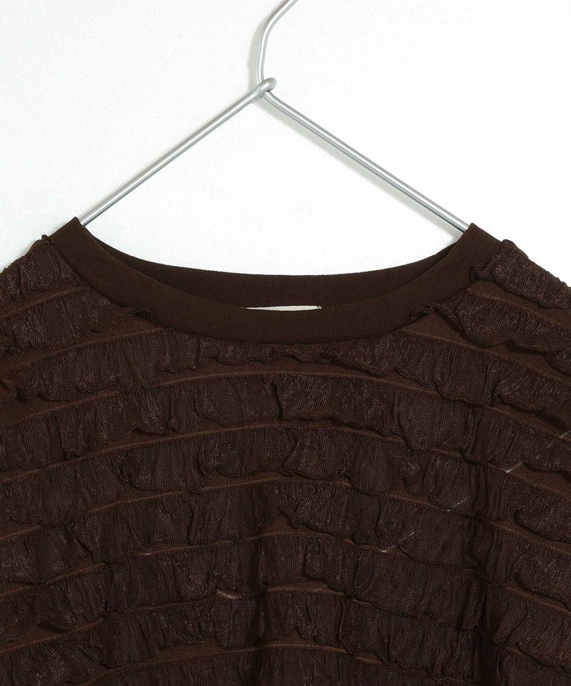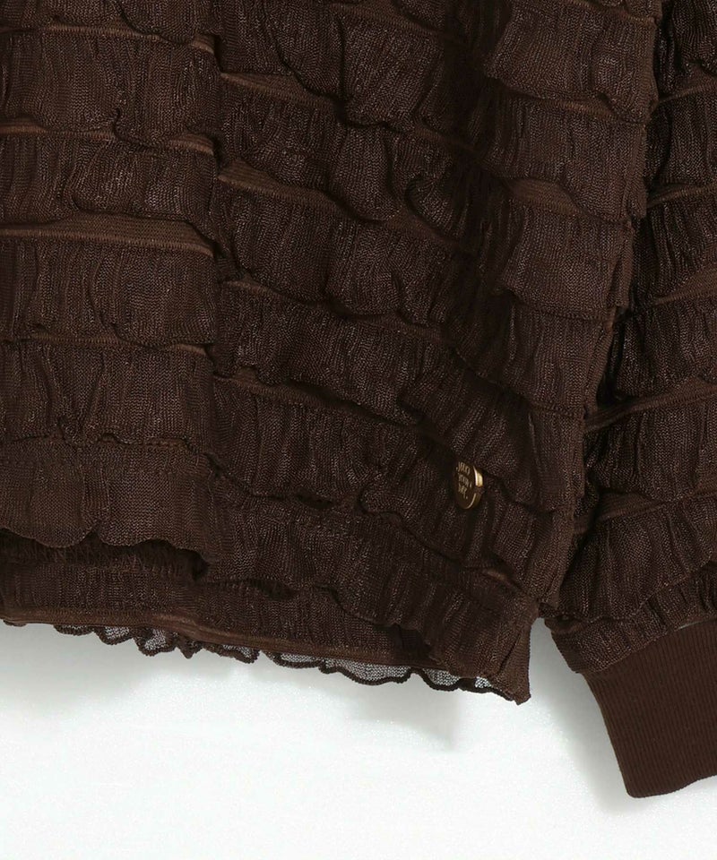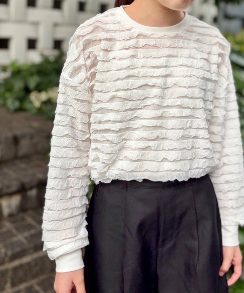 なみなみのフリル部分が2重になるので普通のシアートップスよりも透け感が軽減されているので、インナーも見えにくくなっています。