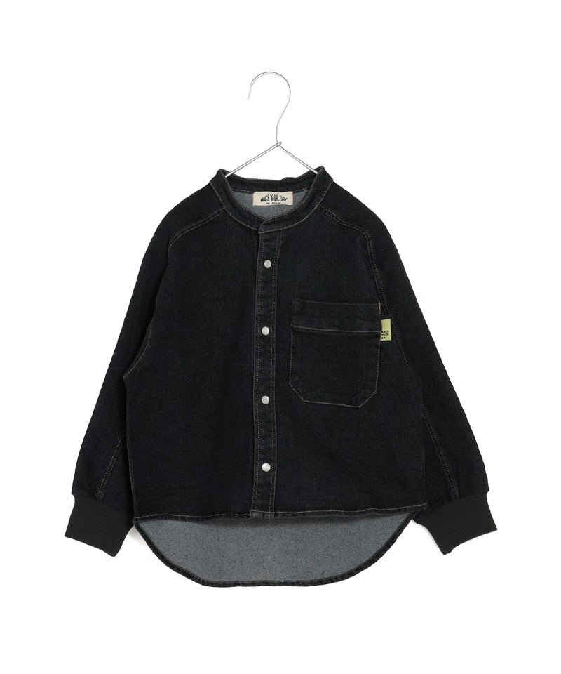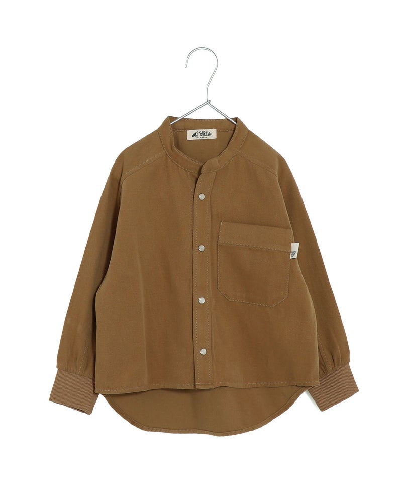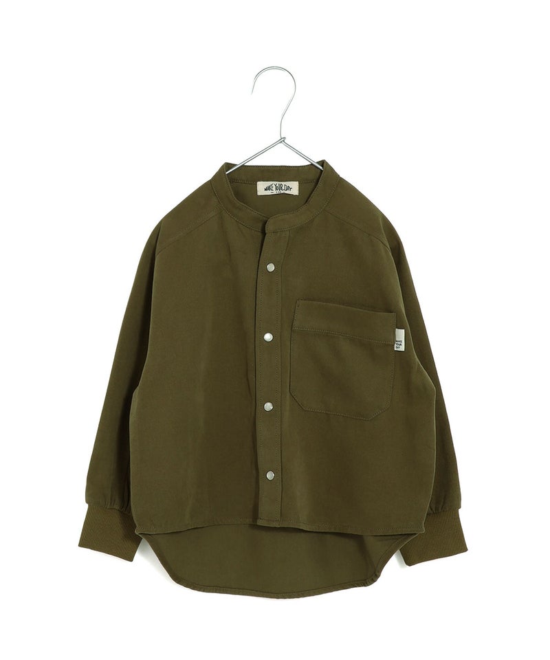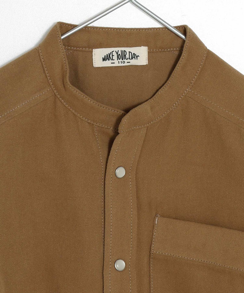 【セール】無地バンドカラー長袖シャツ■80~140cm