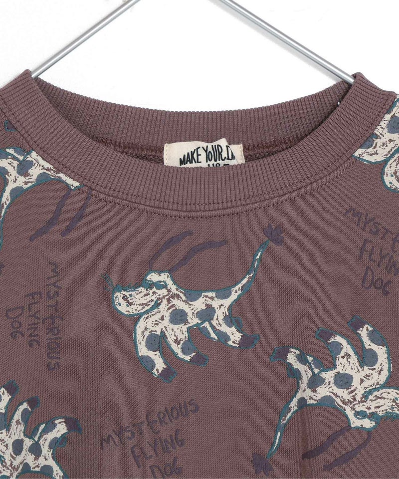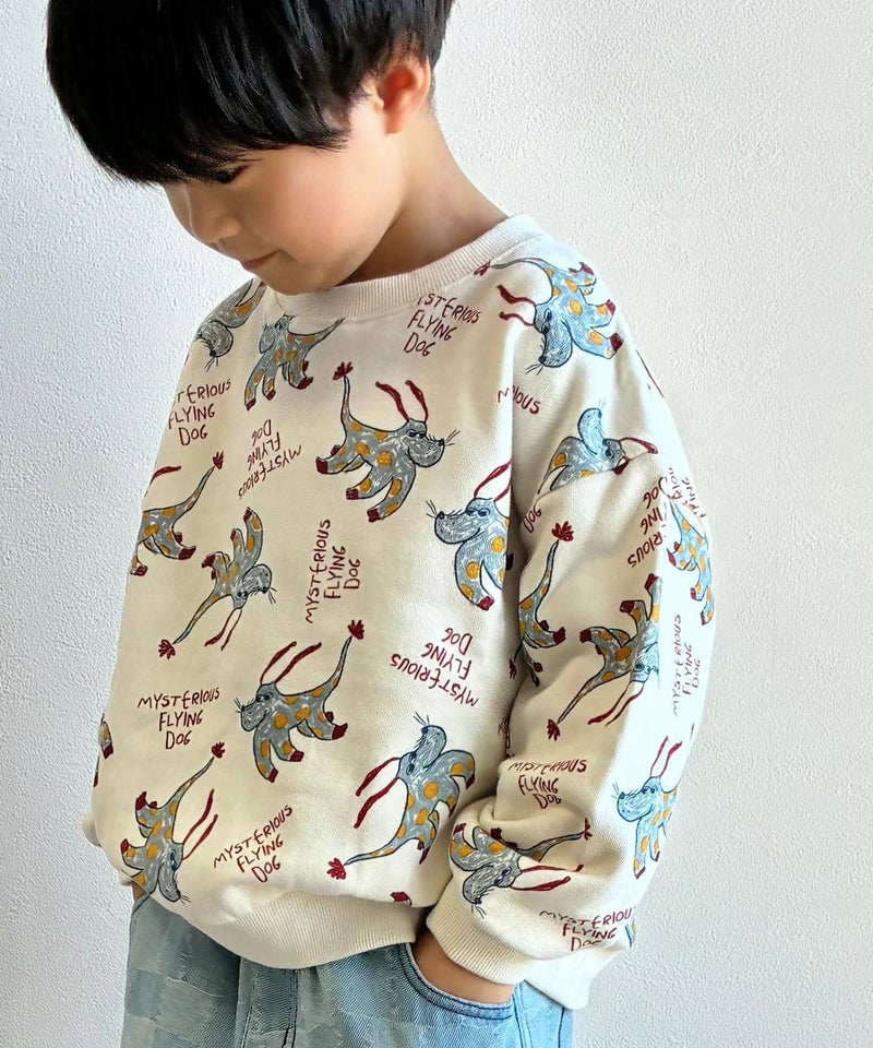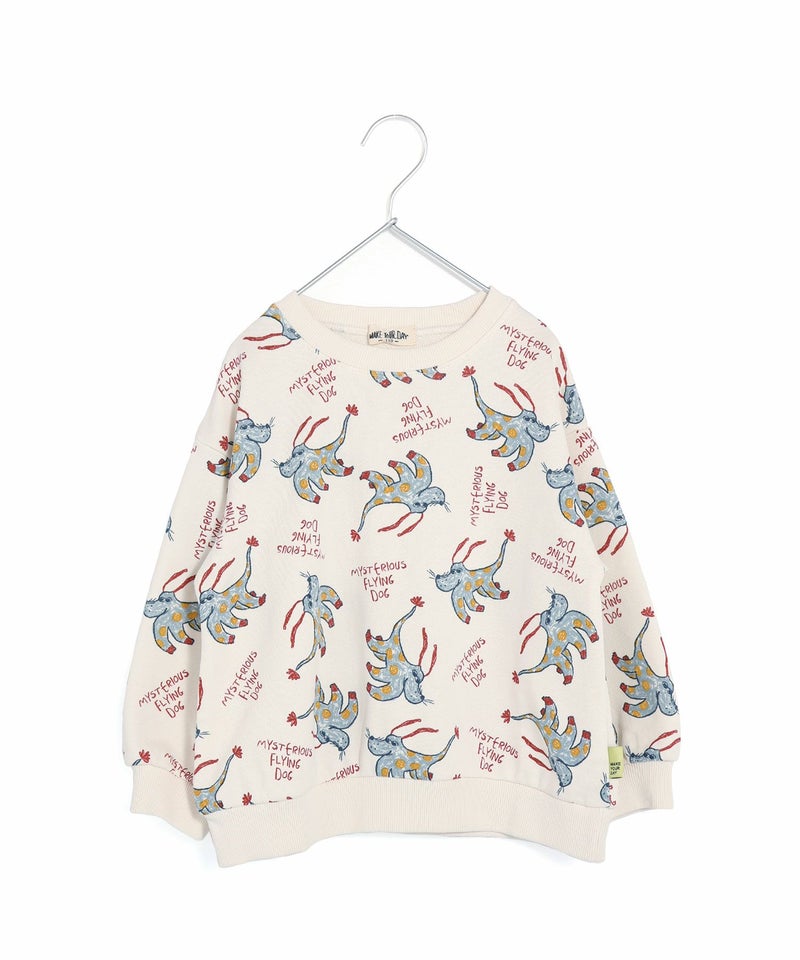 【セール】空飛ぶ犬総柄裏毛トレーナー■80~140cm