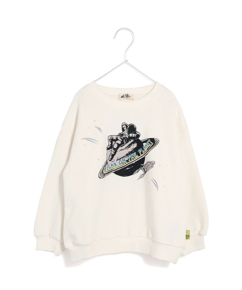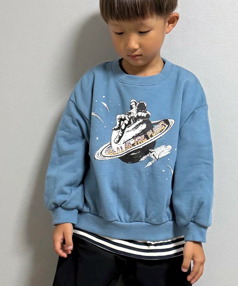 【セール】宇宙でひと休みプリント裏毛トレーナー■80~140cm