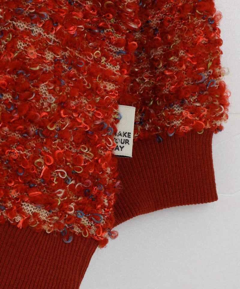 いろんな色がミックスした色で織り込んだジャガードプルオーバー。