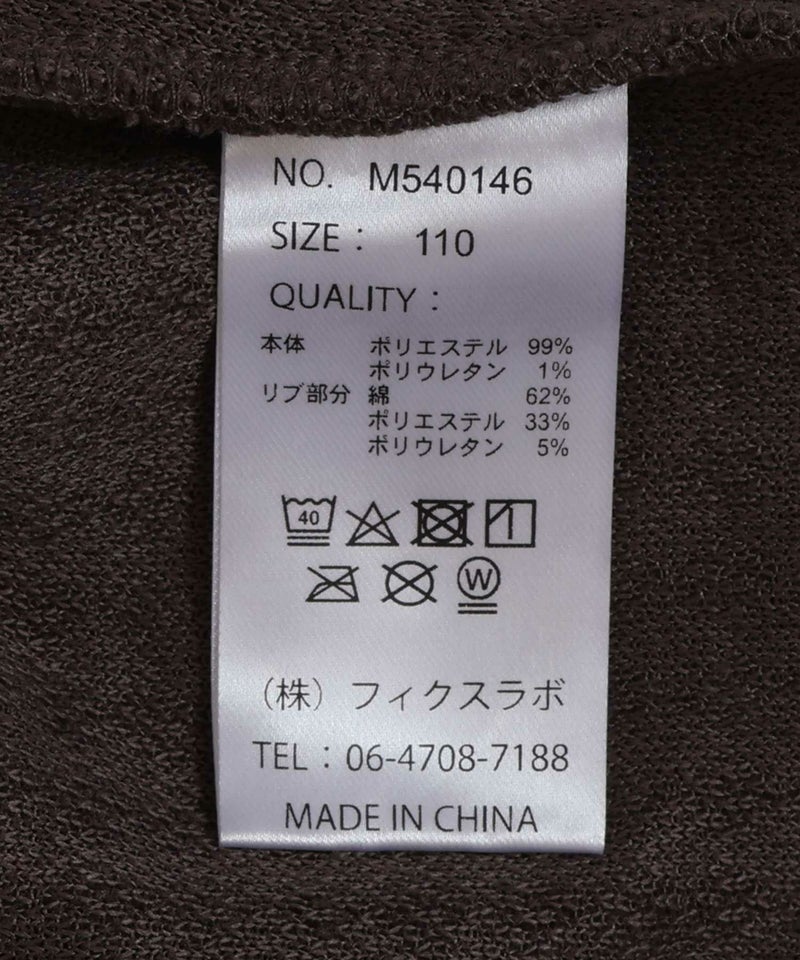本体)ポリエステル100% リブ部分)綿62% ポリエステル33% ポリウレタン5%