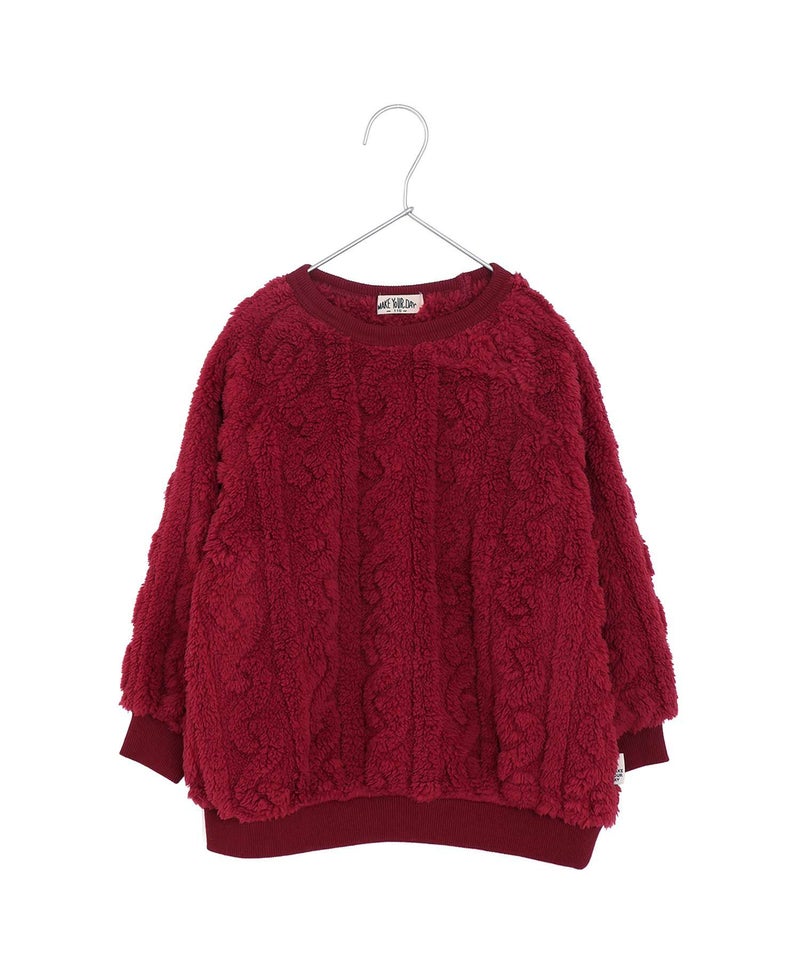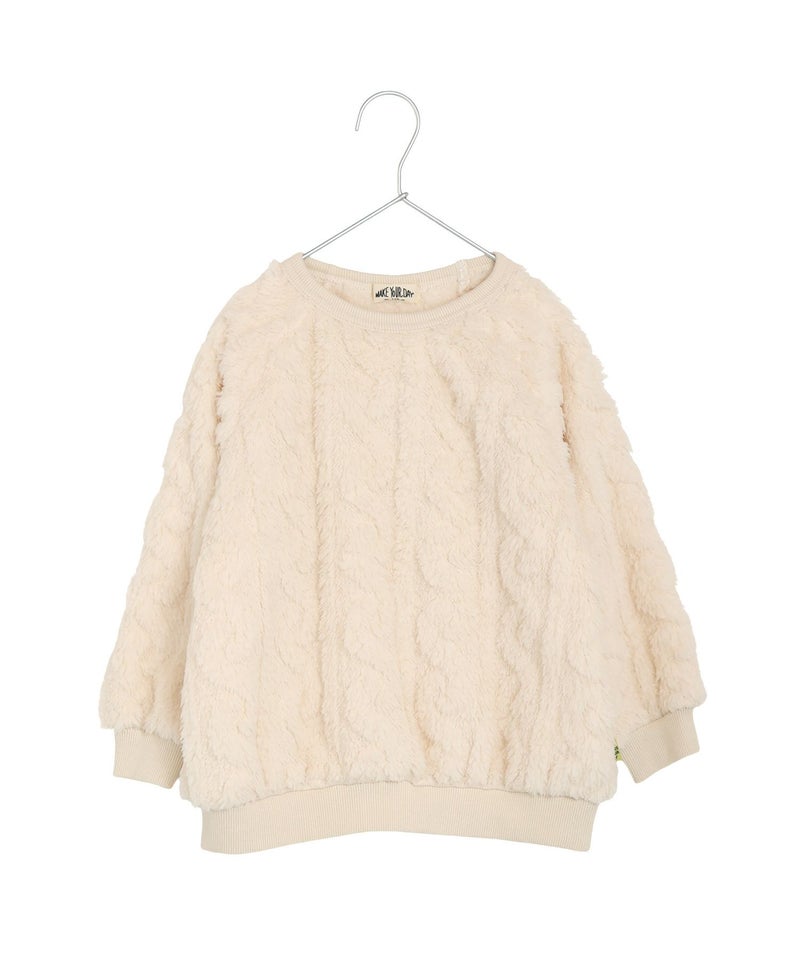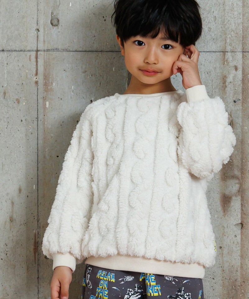 なわ編み模様が浮き出るボアを使用したプルオーバー。