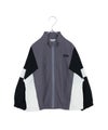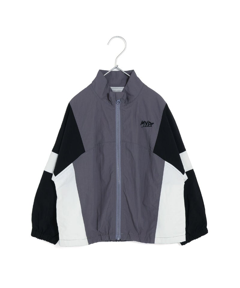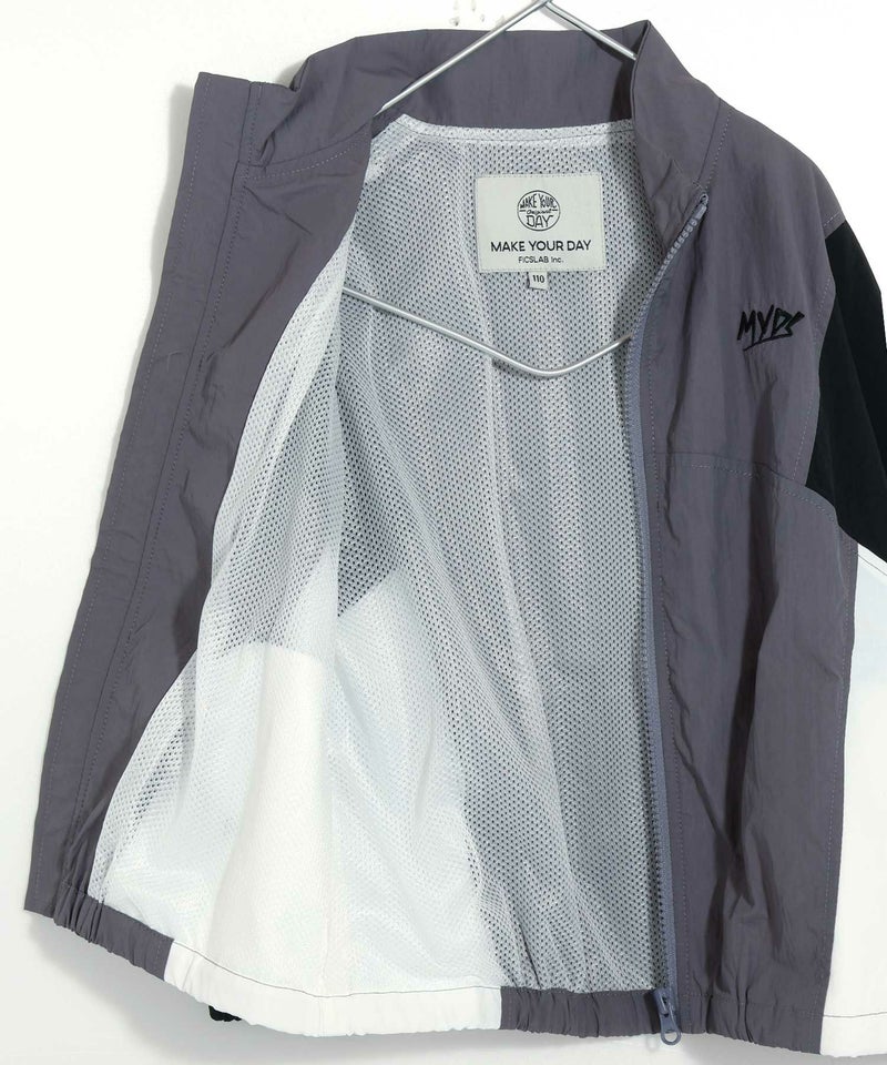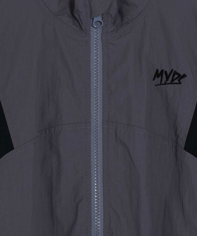 曲線と直線を組み合わせた凝った切替のナイロンジャケット。