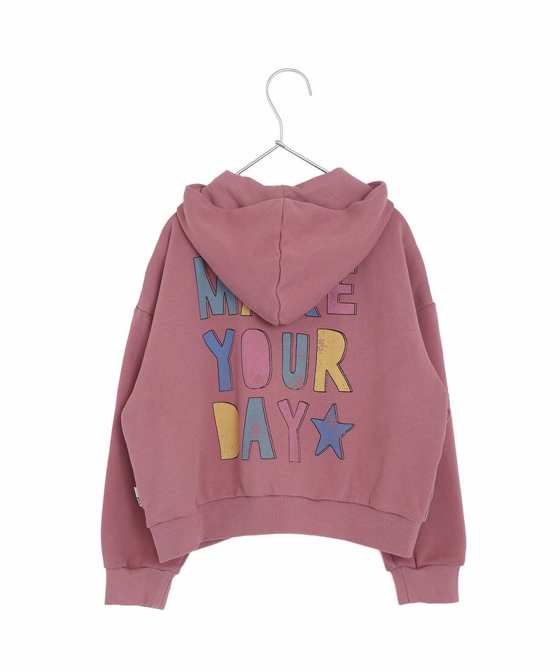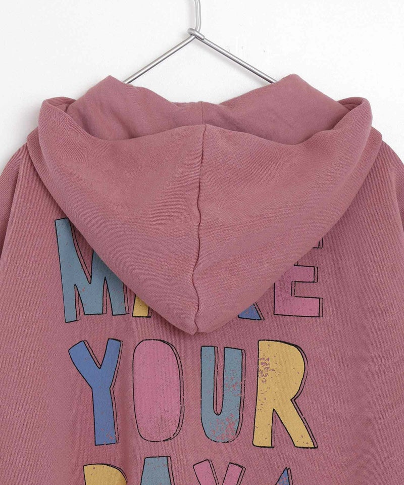 左胸と後ろ身頃にカラフルなMAKE YOUR DAYロゴをプリントしました。
