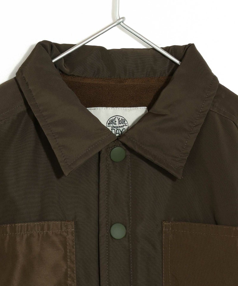 袖部分は裏側がキルティングになっており、身頃部分にはフリースを貼っています。
