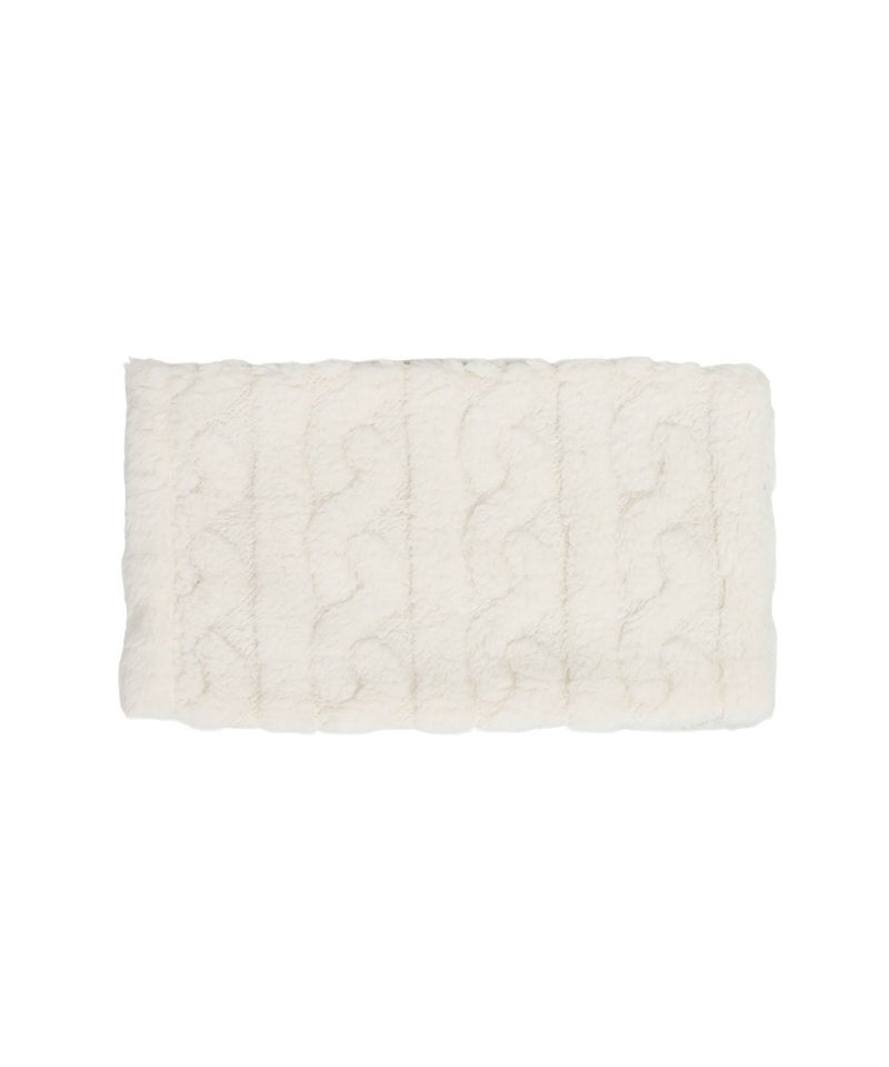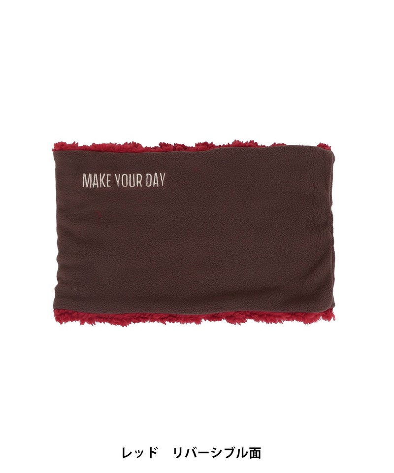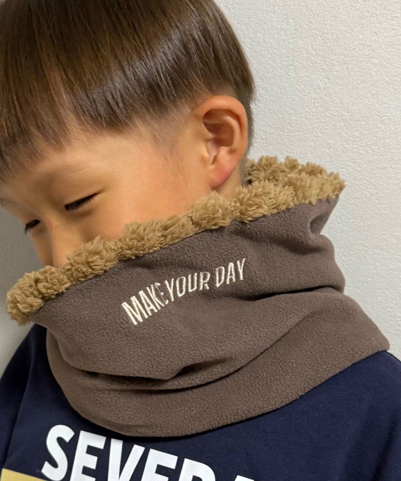 フリース生地となわ編み模様のボア生地でリバーシブルになっているネックウォーマー。