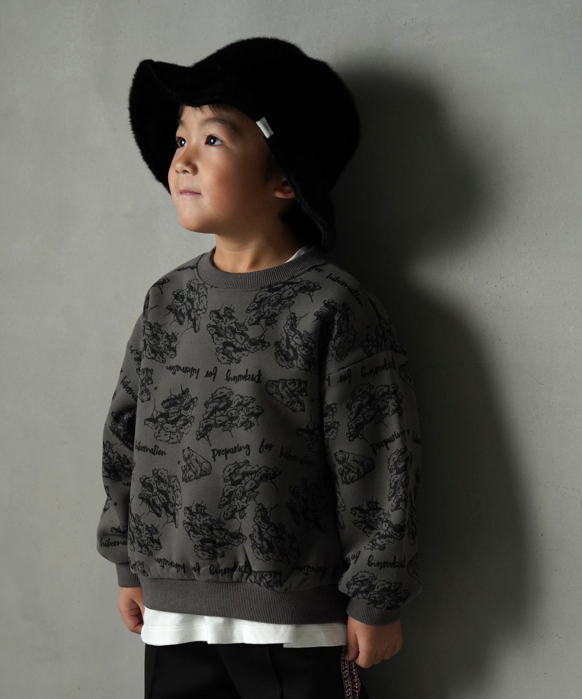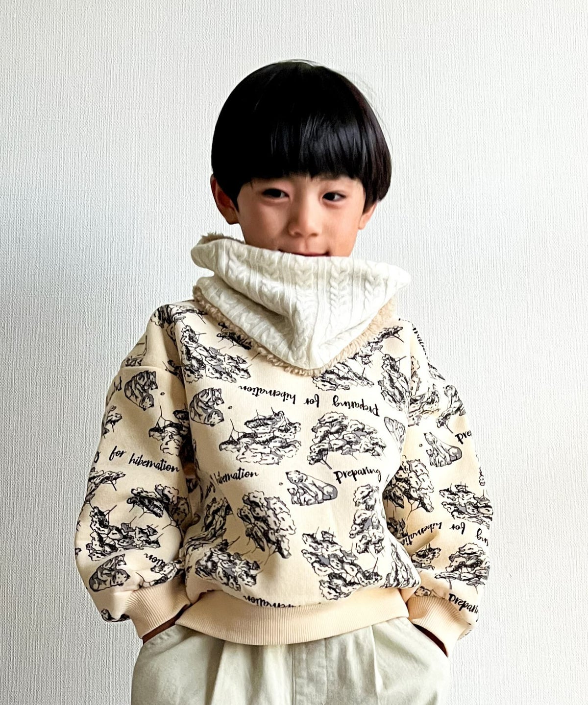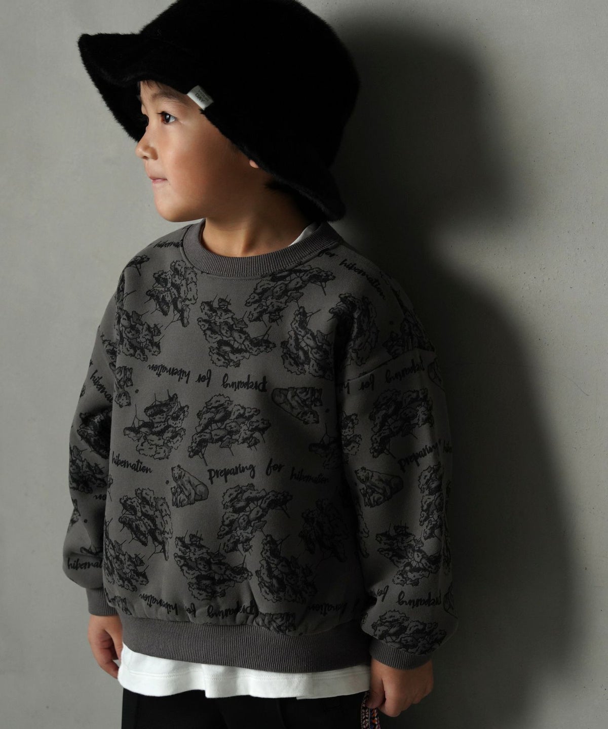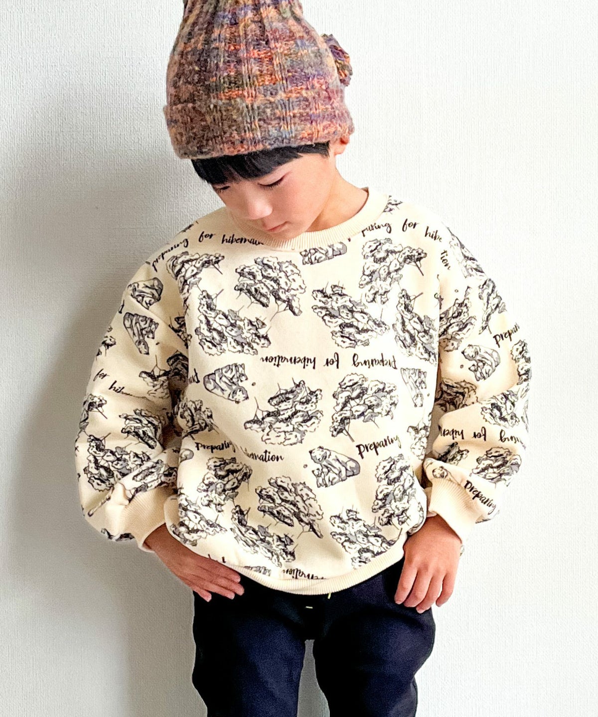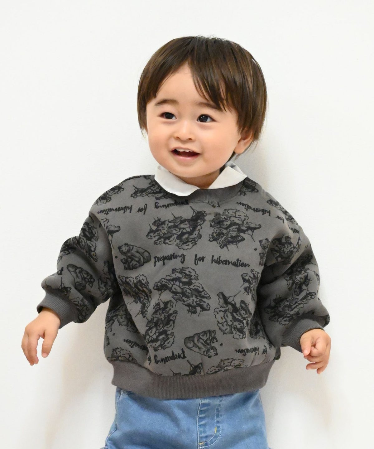 【セール】森のくまさん総柄裏起毛トレーナー■80~140cm