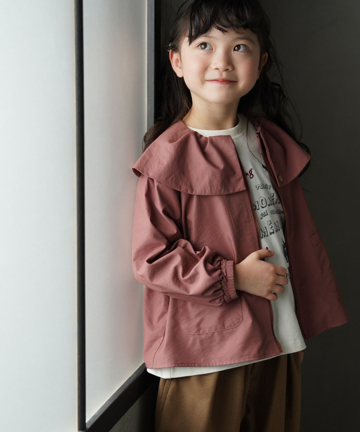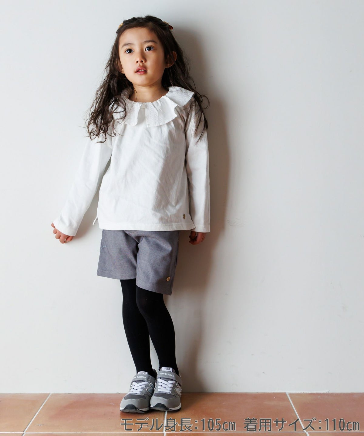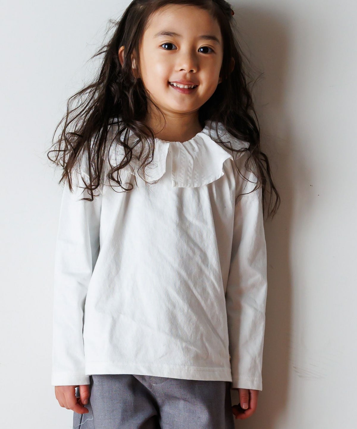 【セール】異素材フリルカラー長袖Tシャツ■80~140cm