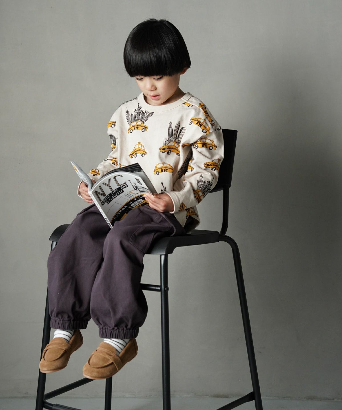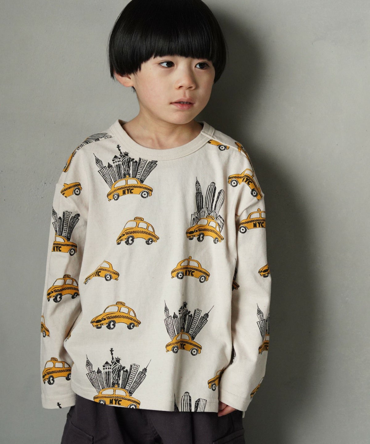 【セール】イエロータクシー総柄長袖Tシャツ■80~140cm