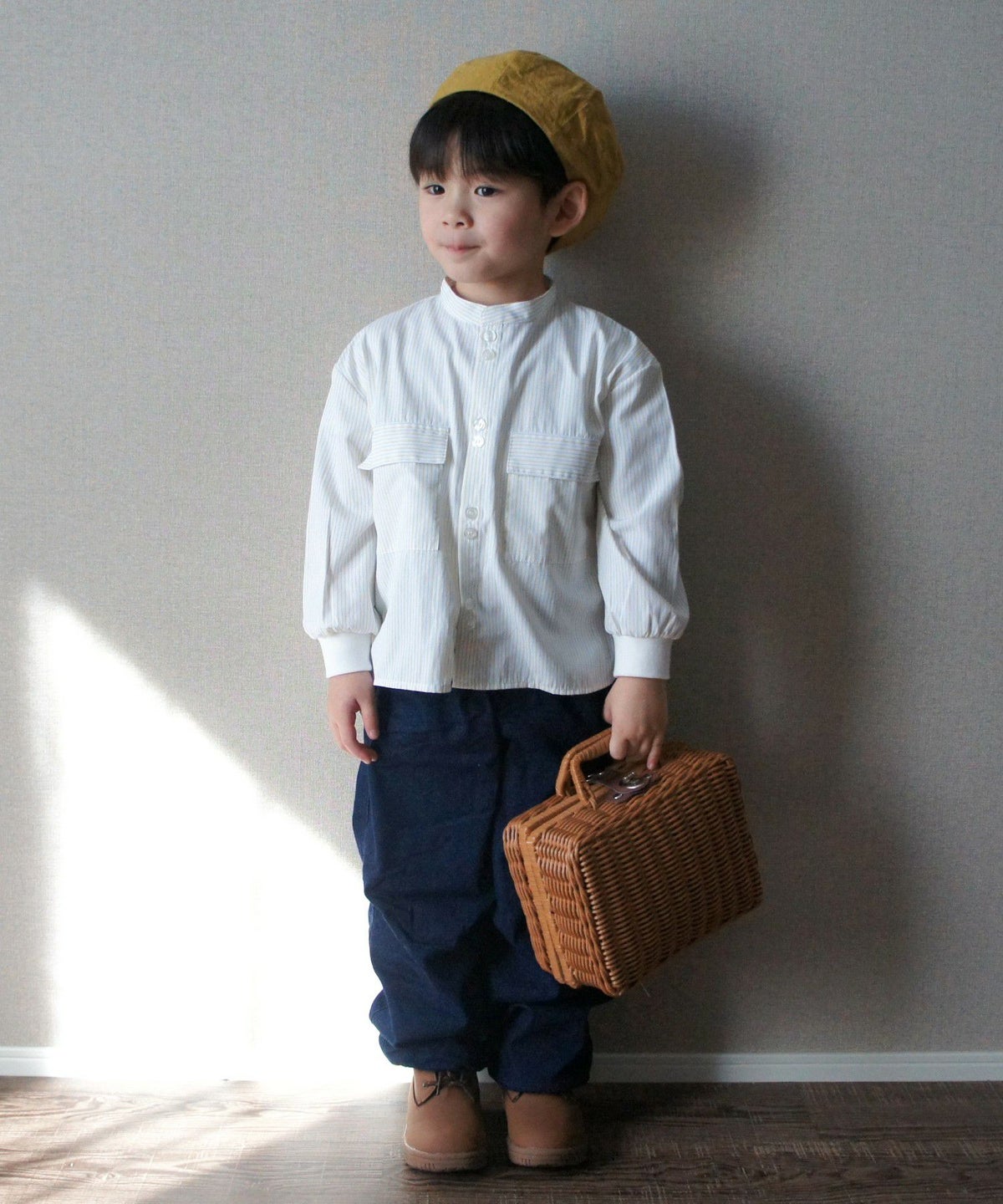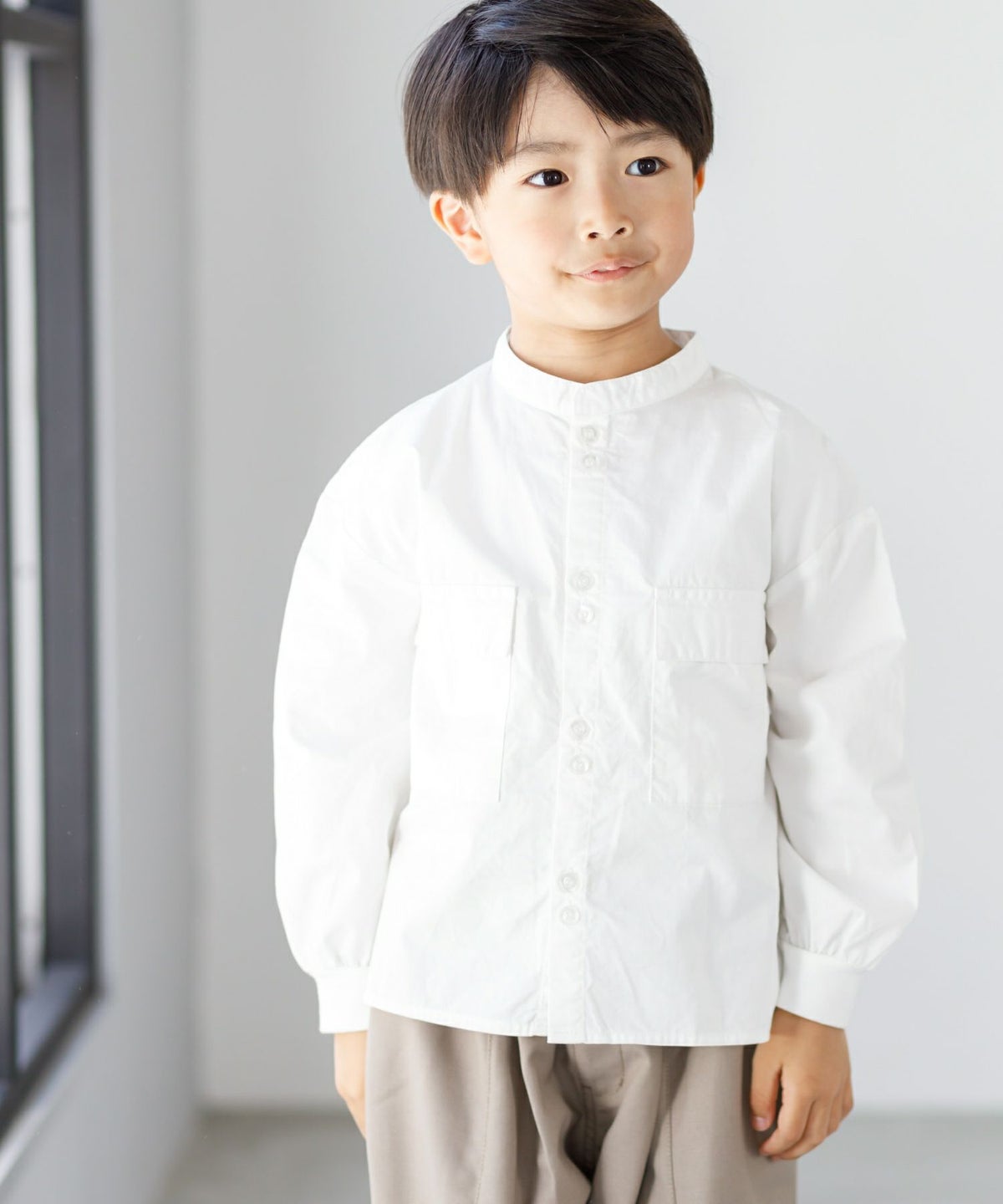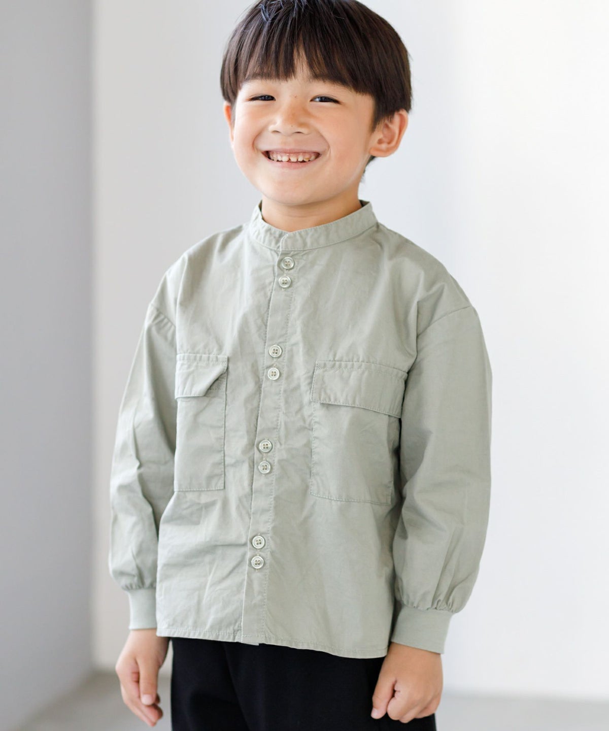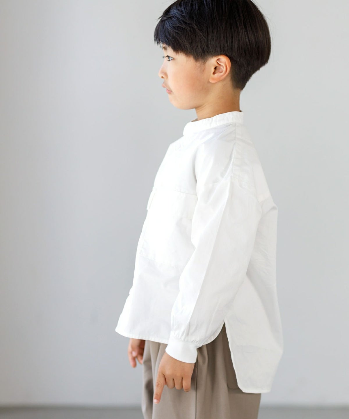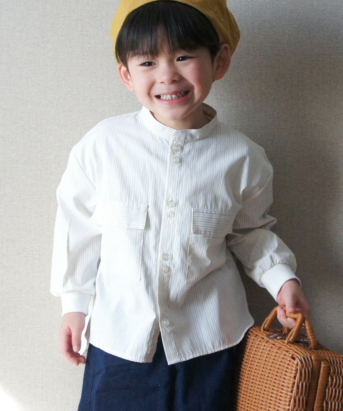 【セール】無地とストライプのバンドカラーシャツ■80~140cm