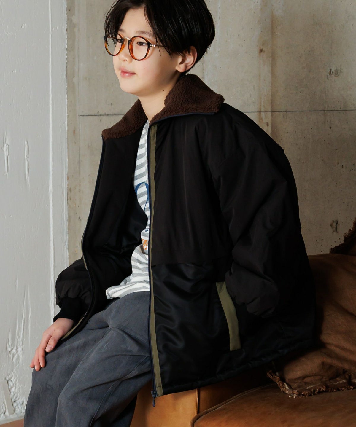 【セール】ボアナイロン切替ジャケット■150.160cm